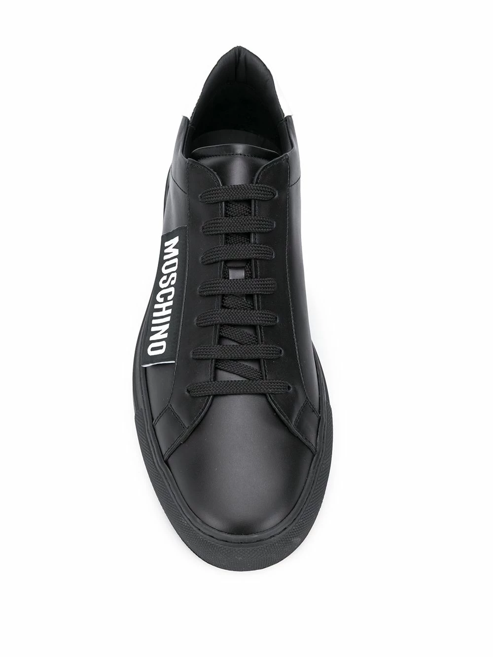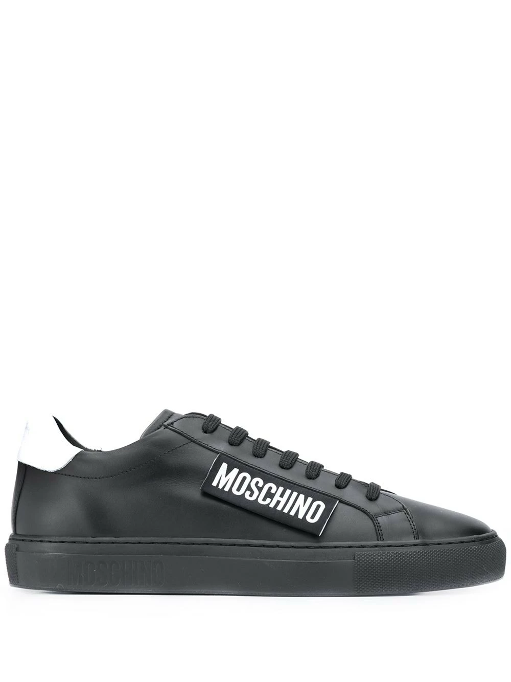 Keep things sleek. These logo-patch Moschino sneakers are sure to put a spring in your step. It’s time to slip-on some style.