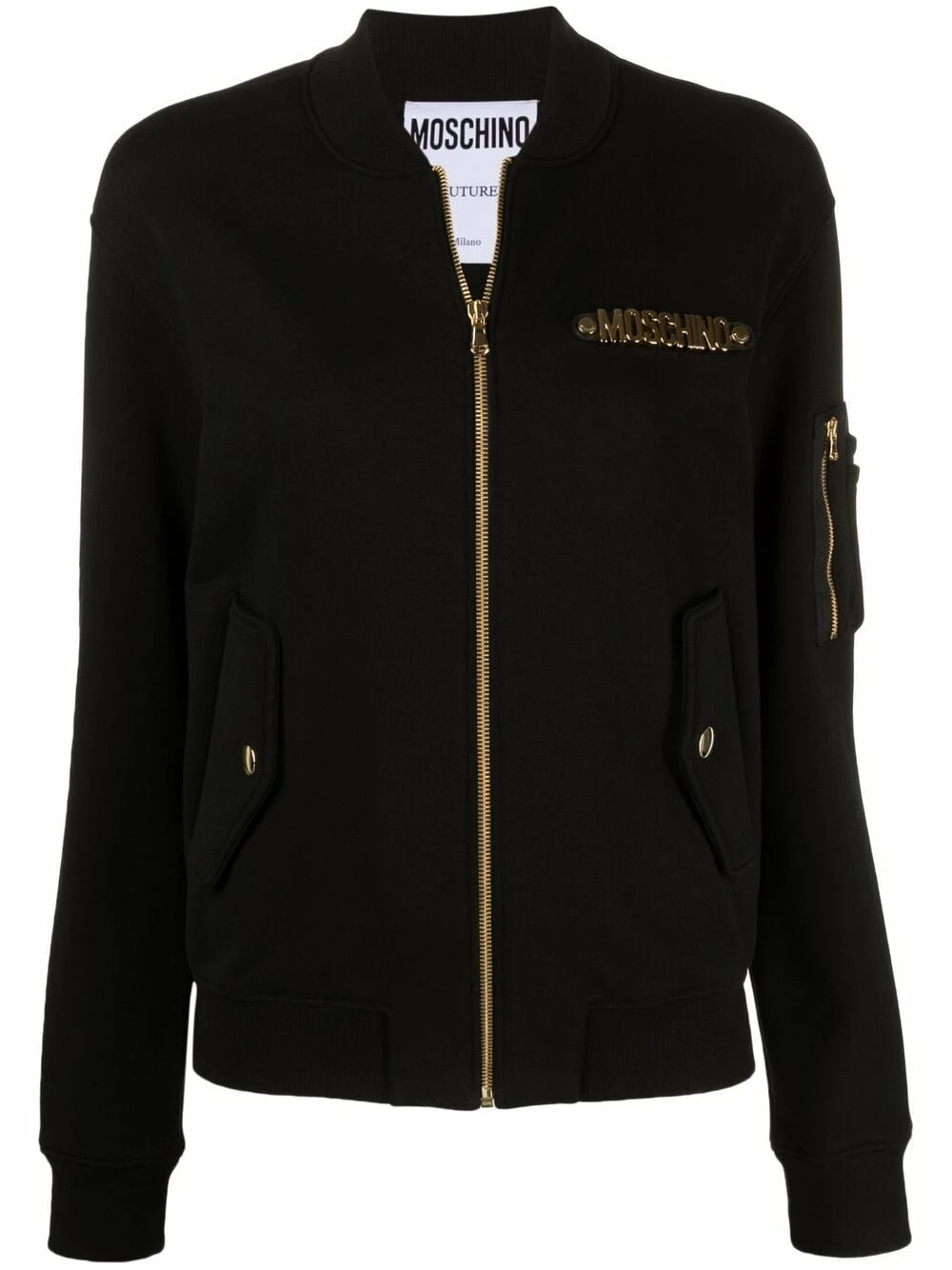 Sporty chic? Why not? Decorated with a gold-tone chest logo plaque, this zip jacket can handle anything. Moschino knows how to do it.