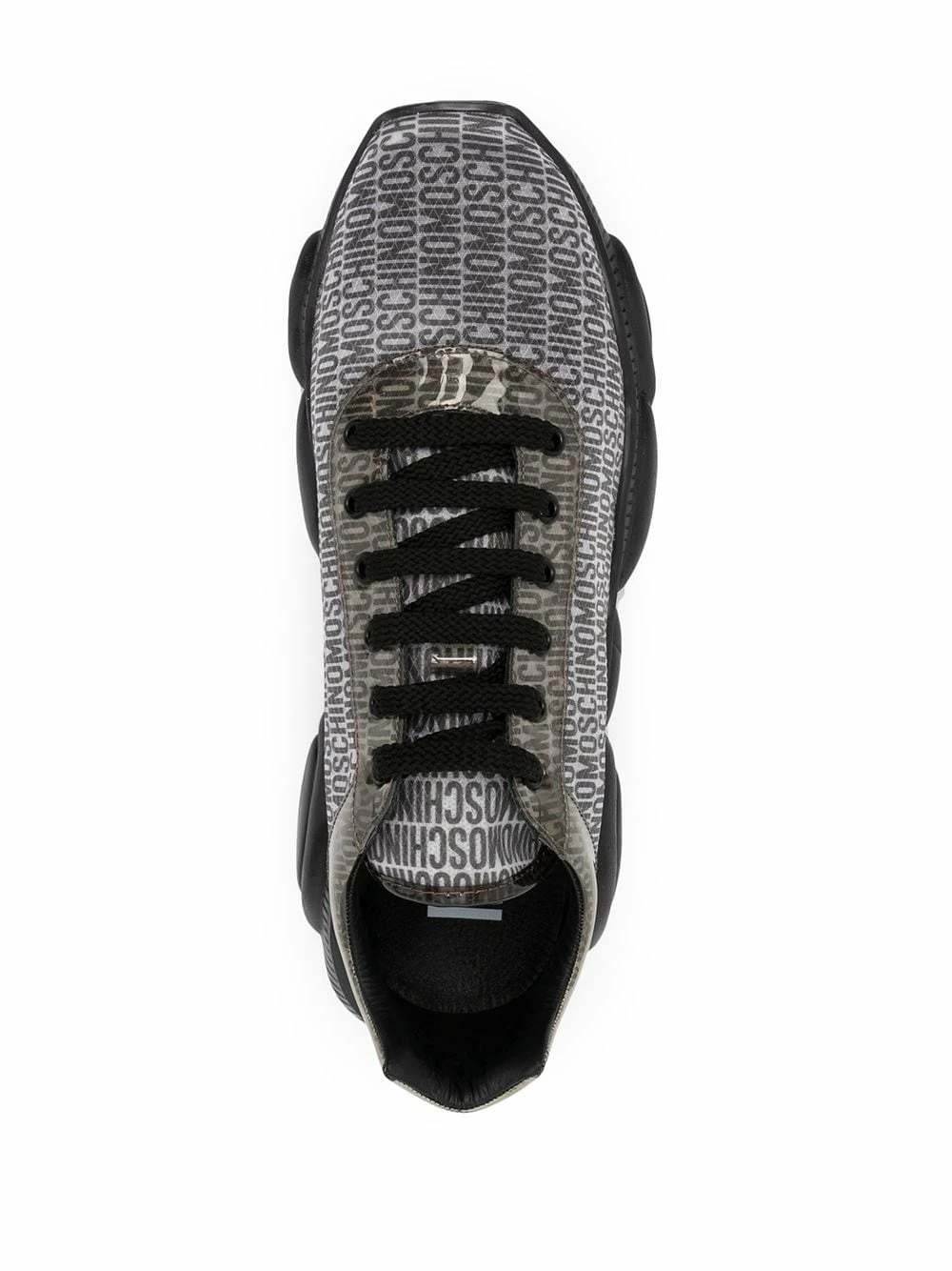 Proudly showcasing its logo throughout, these low-top sneakers from Moschino make a bold choice. The pair sits atop the signature Teddy Bear rubber sole for a distinctive, playful look.
