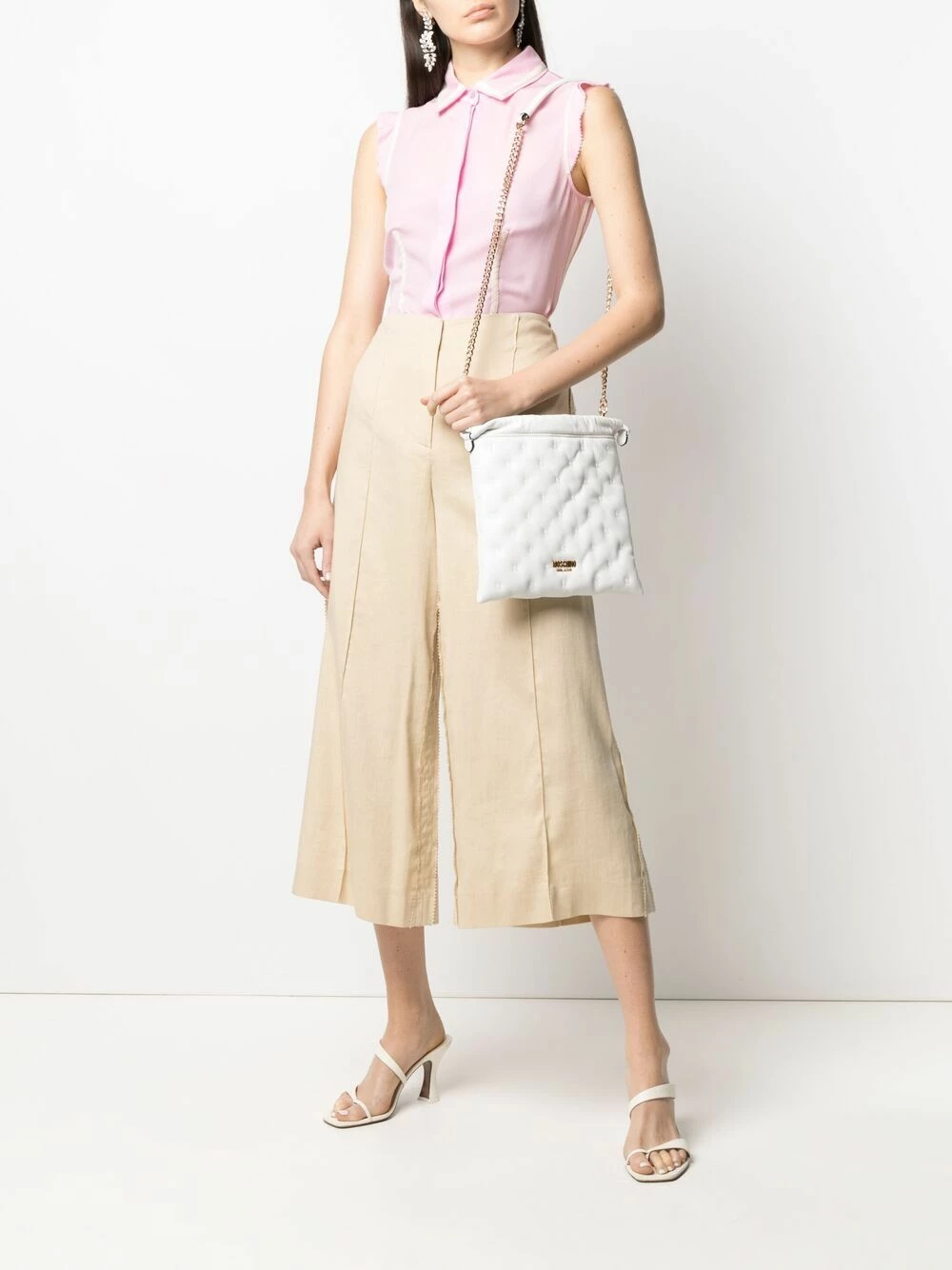 It’s finally summer, so let’s make the best of it with this Moschino blouse. Crafted from pure silk, it has a sleeveless design with a ruffle detailing and a concealed front fastening. Turn the temperature up.