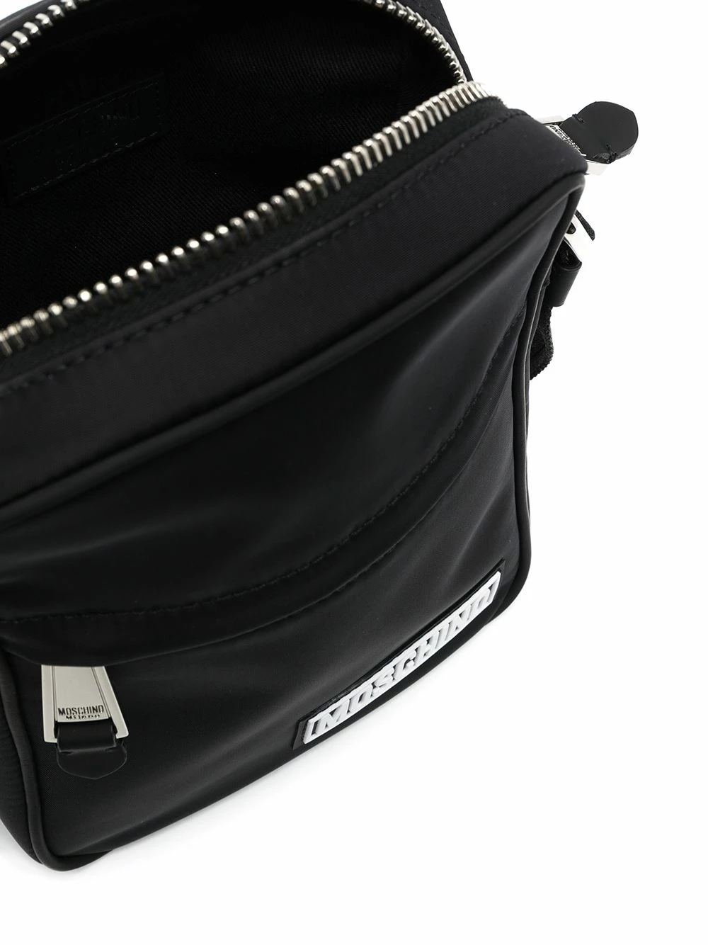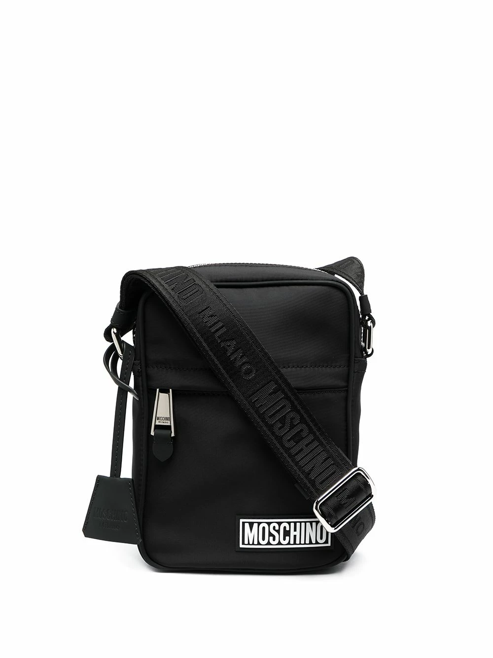 Moschino reminds us that some of the best things come in small sizes. Case in point: this black fabric small logo messenger bag. Less is more.
