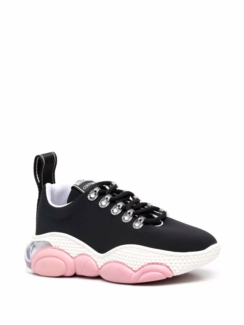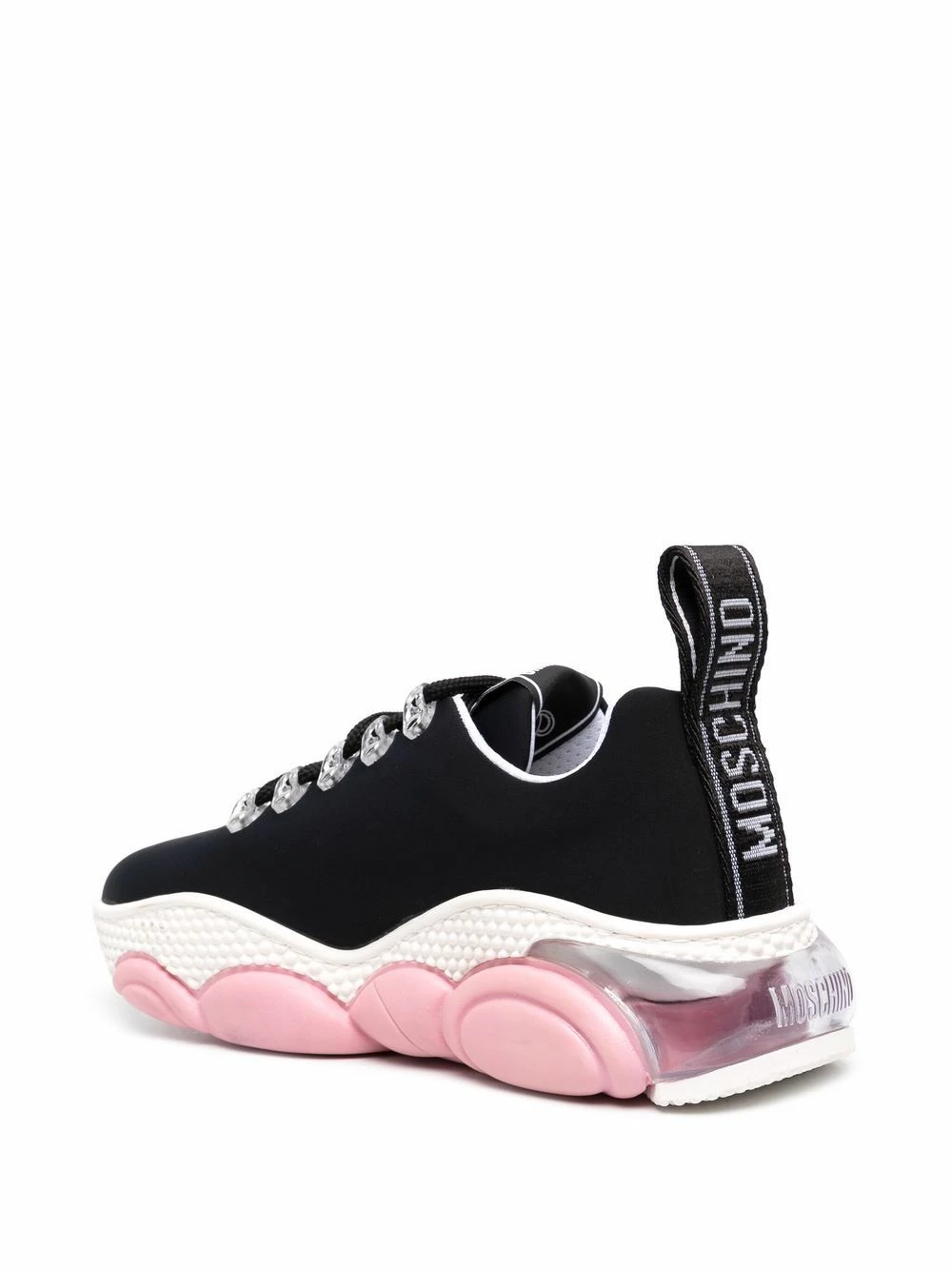 Synonymous with Moschino’s never-dying playful spirit, the Teddy Bear is instantly recognisable and loved by fashion milieu. Here, it takes a more discreet form, shaping the rubber sole of these lace-up sneakers from the house’s AW21 collection – a subtle detail with big style impact.