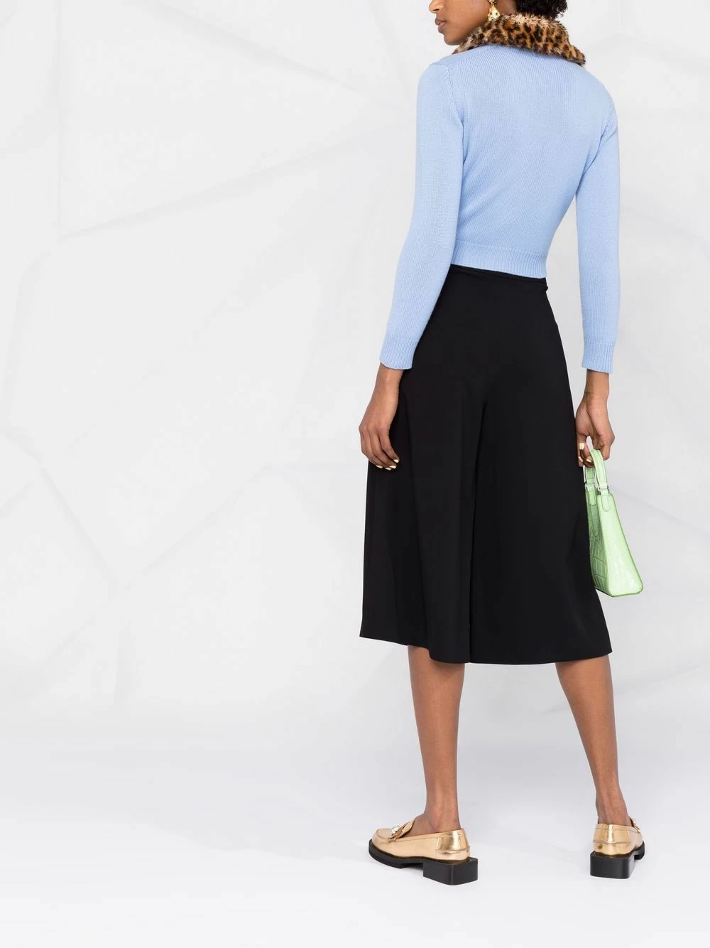 The wider the leg, the higher the fashion. Case in point: these wide-leg trousers from Moschino. Dare to flare.