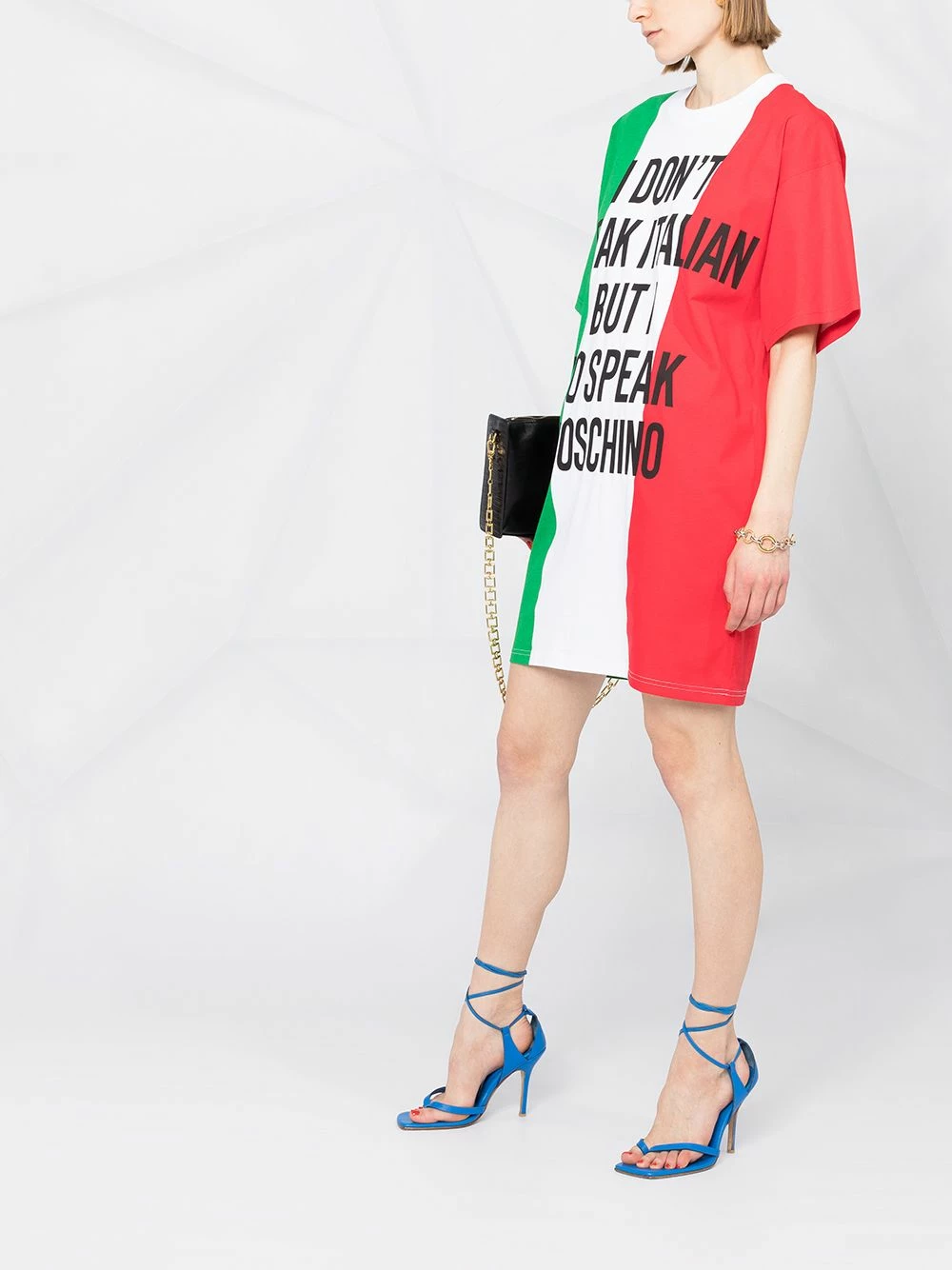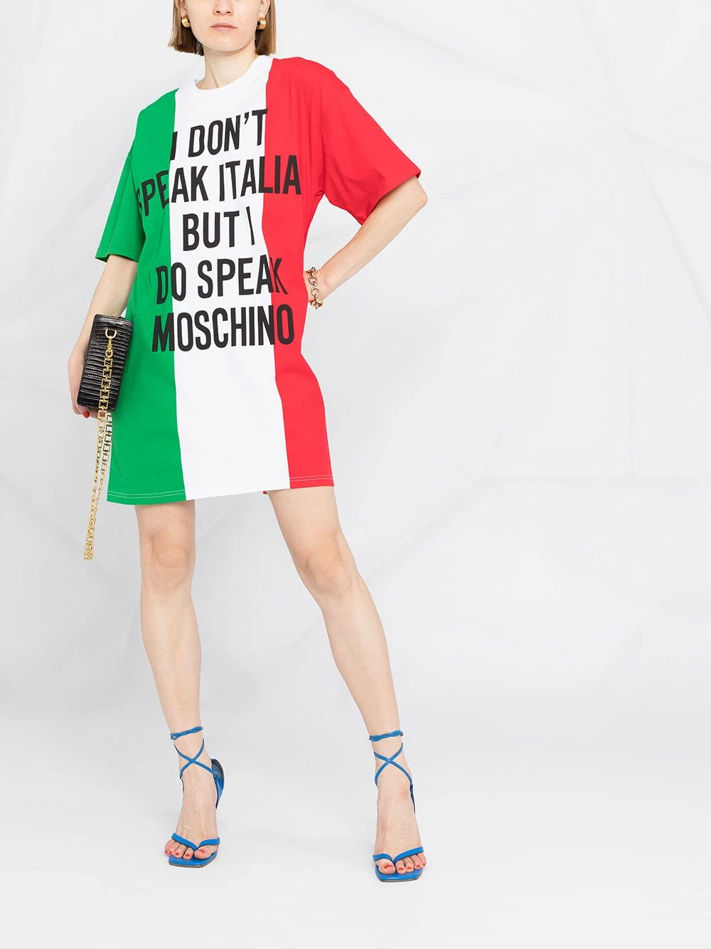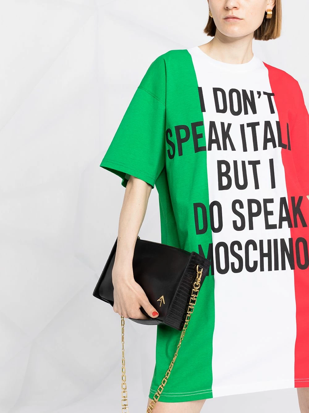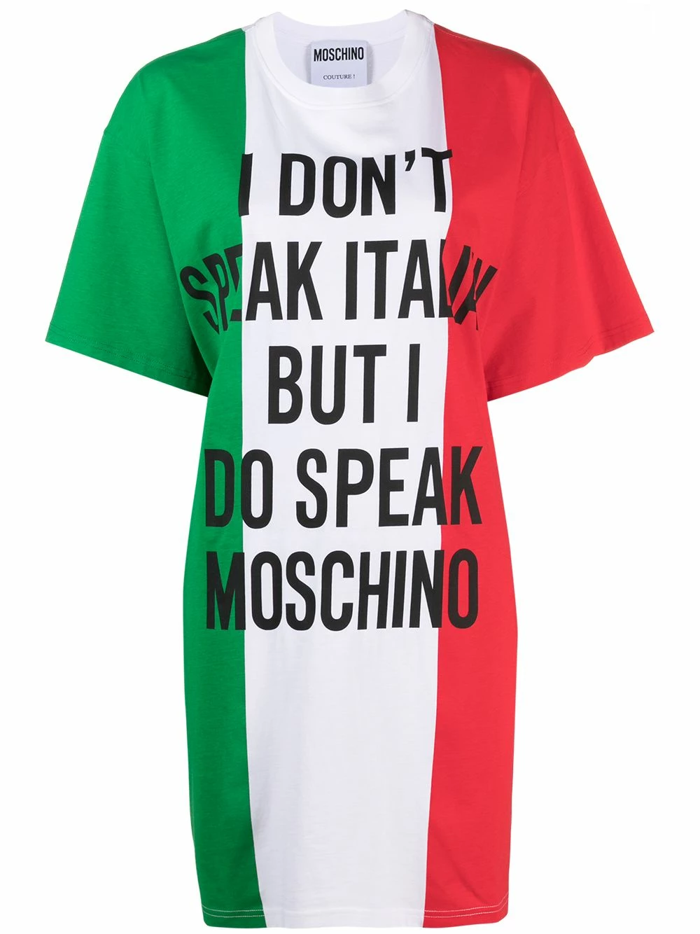 Love all things Moschino? Wave your fashion flag proudly with this ‘Don’t Speak Itali’ T-shirt dress that lets it be known that even if your Italian isn’t strong, you are perfectly fluent in whimsical looks. Bellissima.