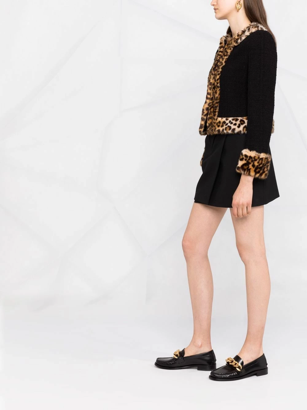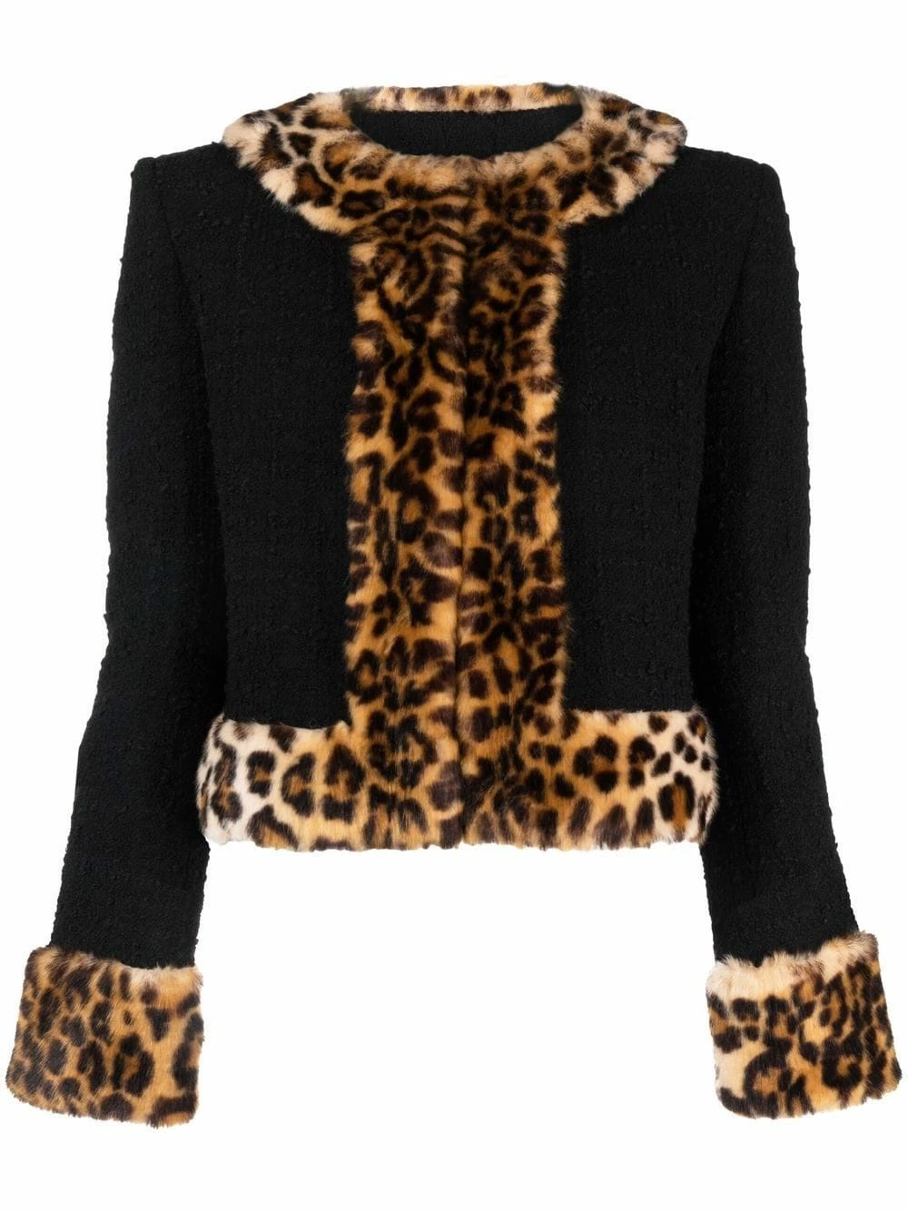 In Moschino’s typical maximalist fashion, this black faux fur-trimmed jacket is an eye-catching addition to the brand’s collection. With a leopard pattern design, this piece maintains a balance of bold sophistication.