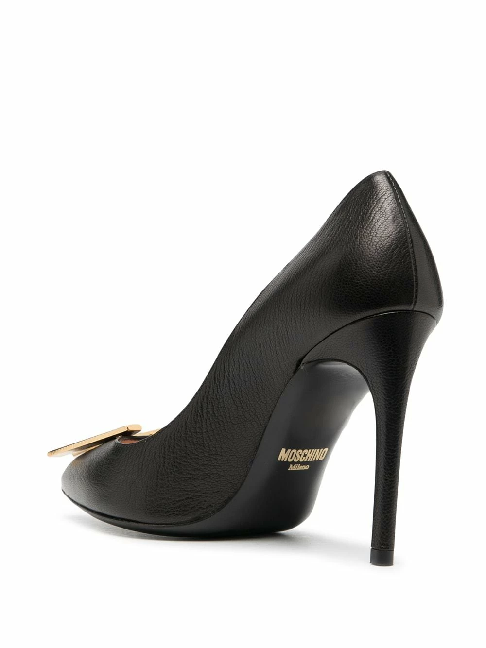 These Moschino pumps aren’t solely made for walking, but also to be admired. Made from black leather and punctuated by a gold-tone logo plaque, you’ll have a hard time not looking down yourself to check them out. What’s right is right, and this is very right.