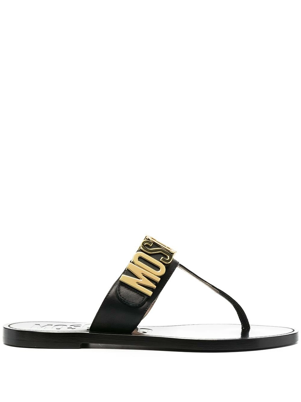 See you on the sand. We don’t know about you but this pair of flat sandals by Moschino have us dreaming of warmer weather with their comfortable thong design and statement gold-tone logo plaque. *Checks flights*