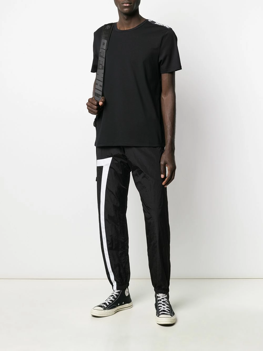 It’s not a stretch to say that everyone needs a black T-shirt (or two) in their edit. Made from comfortable stretch-cotton, this T-shirt from Moschino has logo lettering down a single shoulder. Not to spell it out, but we think this deserves a place in your wardrobe. Featuring a round neck, short sleeves, a straight hem and logo lettering down the shoulder.