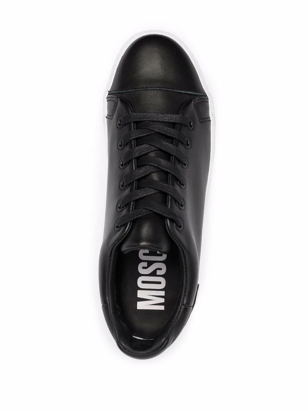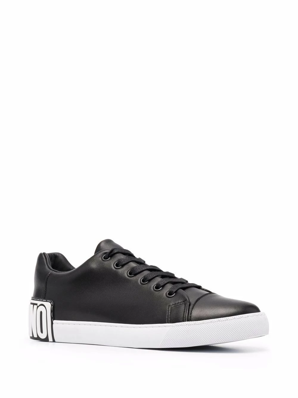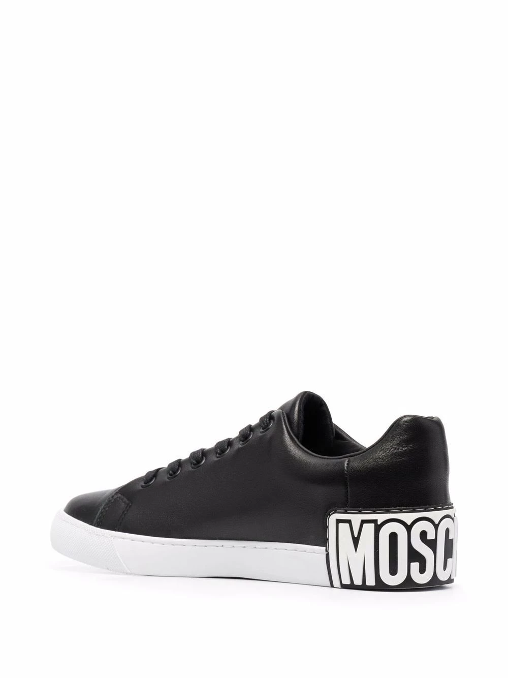 Style meets practicality in these low-top sneakers from Moschino. Sleek in construction, the lace-up design is simply detailed with a three-dimensional rubberized Maxi Logo plaque at the heel.