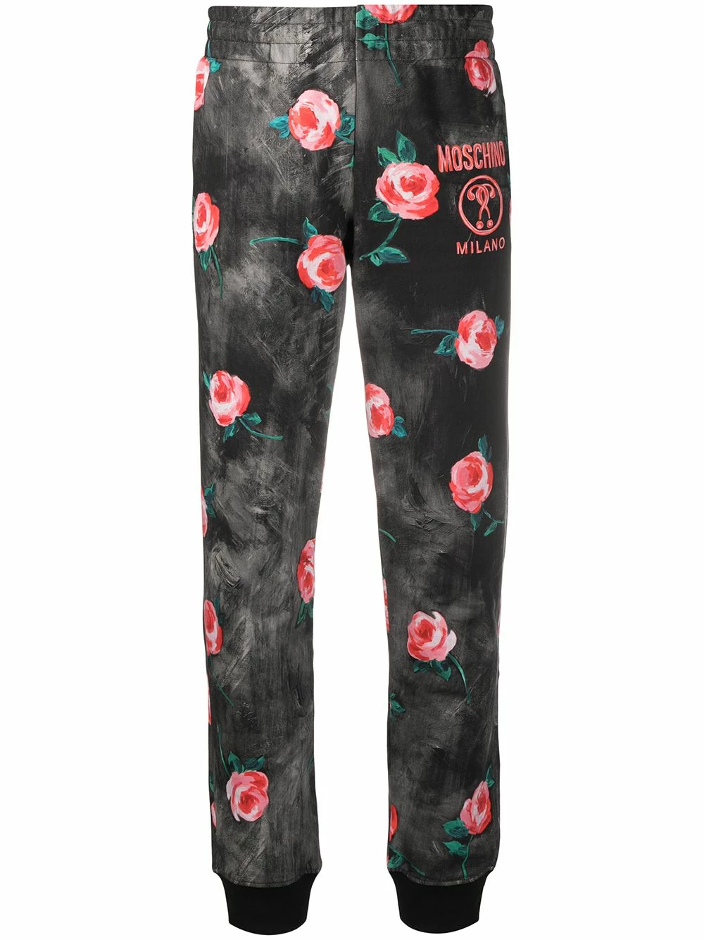 The only thing better than feeling comfy is looking great at the same time. Decorated with an all-over rose print and a logo print to the front, these track pants from Moschino prove you can cross both off your list. Multitasking – even on off-duty days.