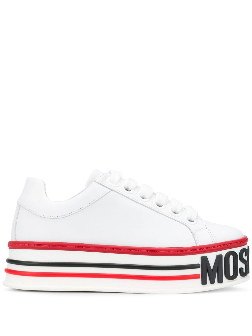 Time to upgrade your sneaker game. Decorated with a rubberised logo to the front and detailed with a platform rubber sole, these sneakers from Moschino will lift you up in style. Level up!