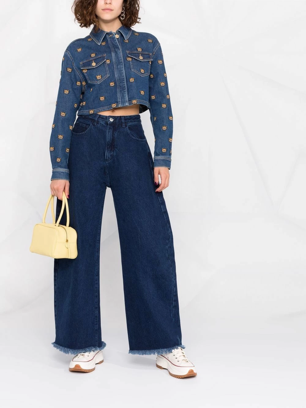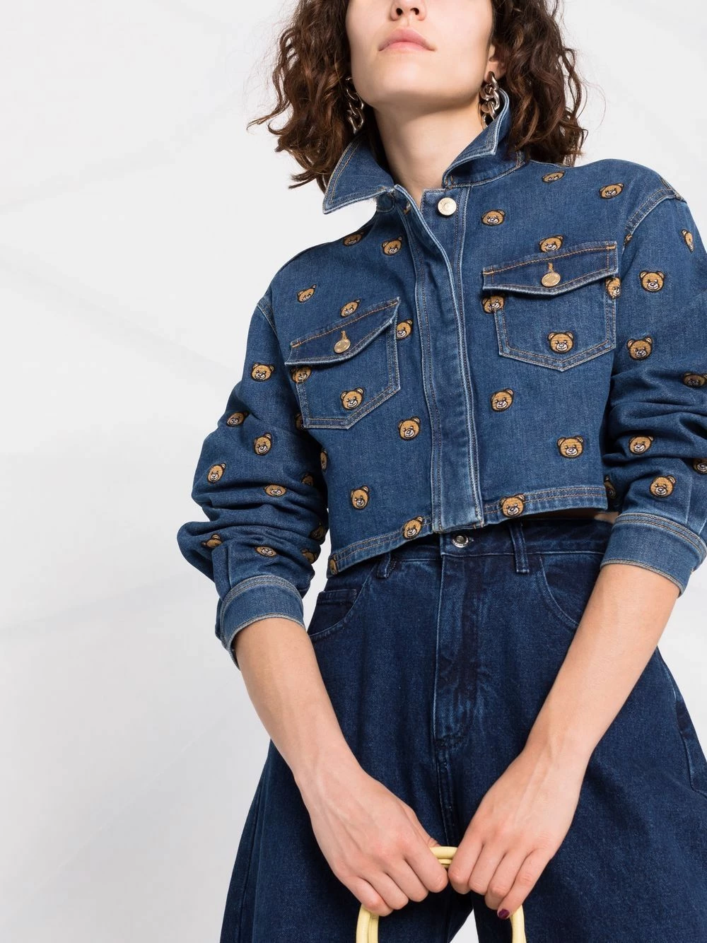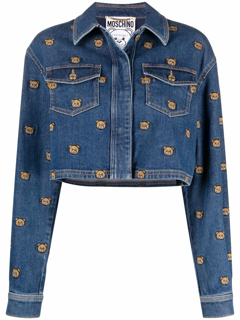 Low-maintenance casual style. Boasting an embroidered Teddy Bear pattern, this Moschino denim jacket will effortlessly uplift your look. No petting needed.