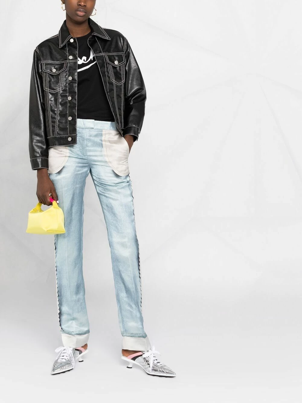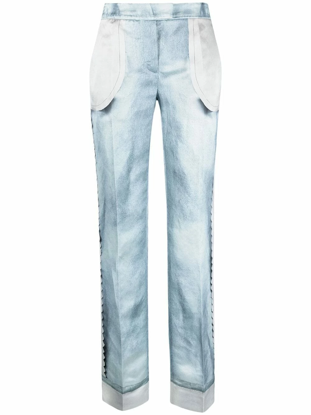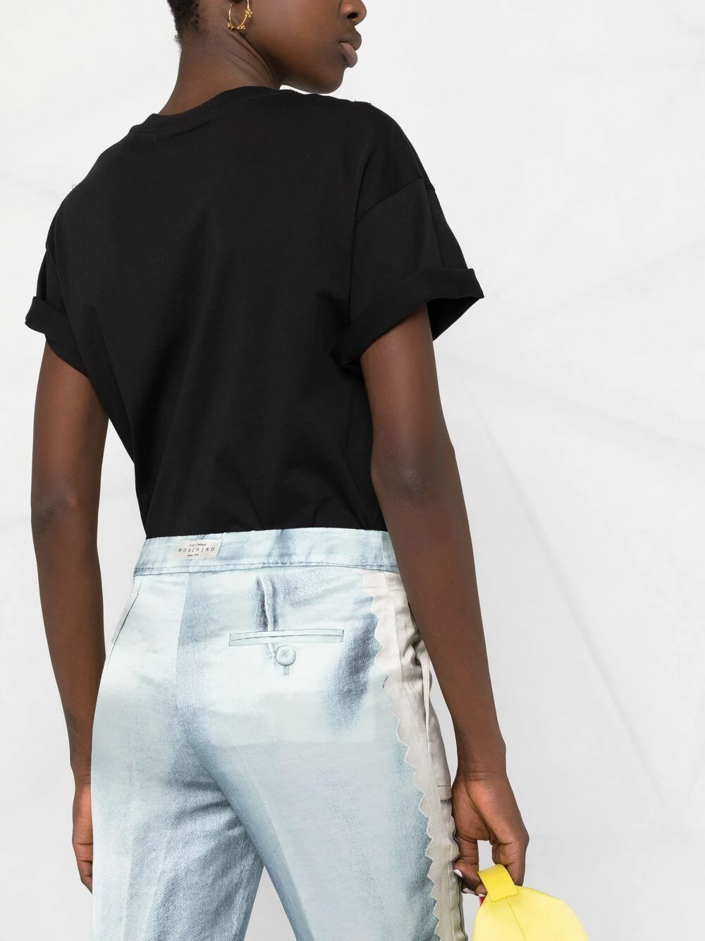 Expect the unexpected, courtesy of Moschino. This classic straight-leg design comes with an unconventional detailing to it: an exposed-seam and a trompe l’oeil-print. Nothing but extraordinary.ย