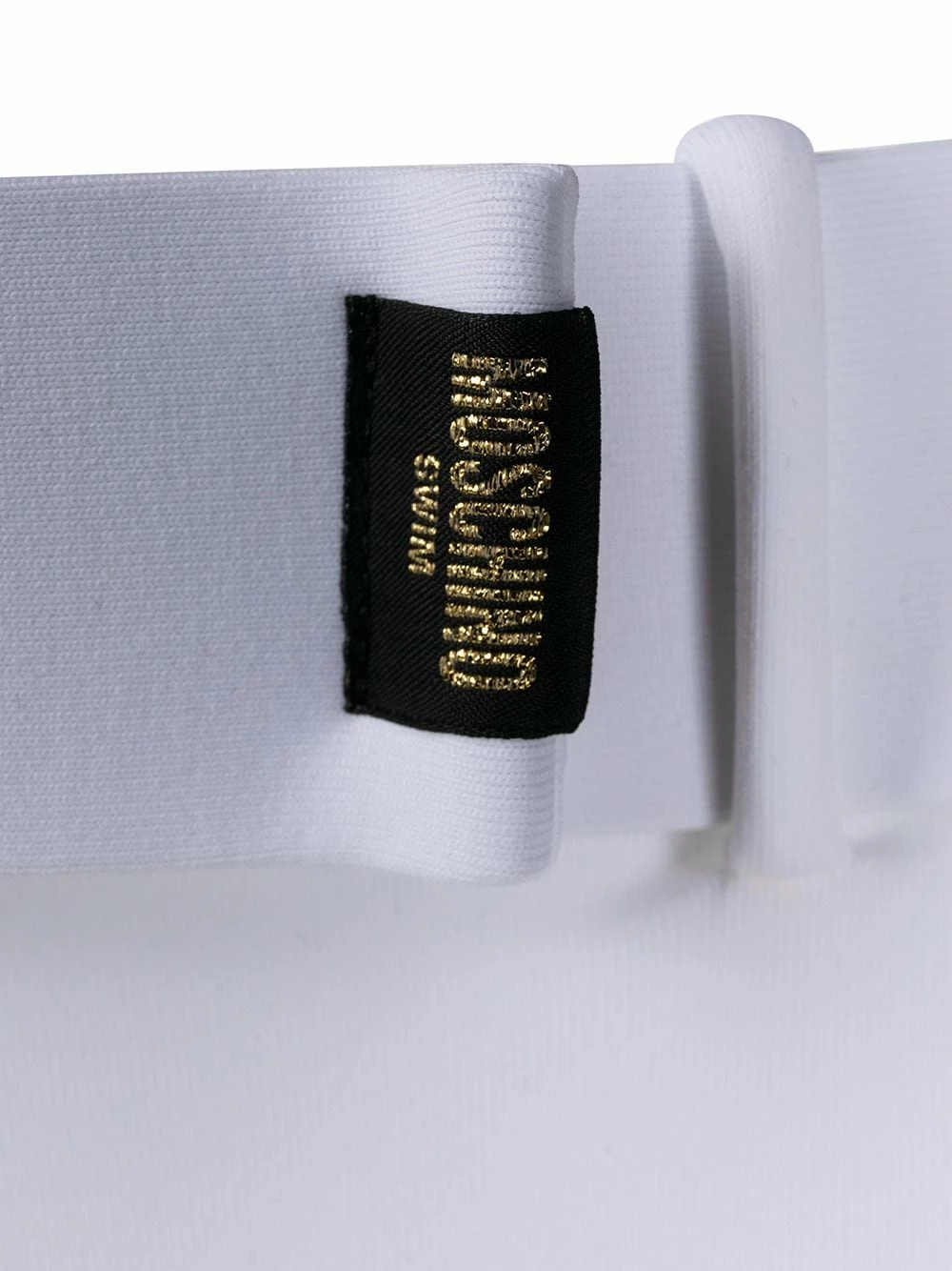 Going somewhere warm? Don’t forget these belted bikini bottoms from Moschino. Who knew that top-tier style could be so easy?ย