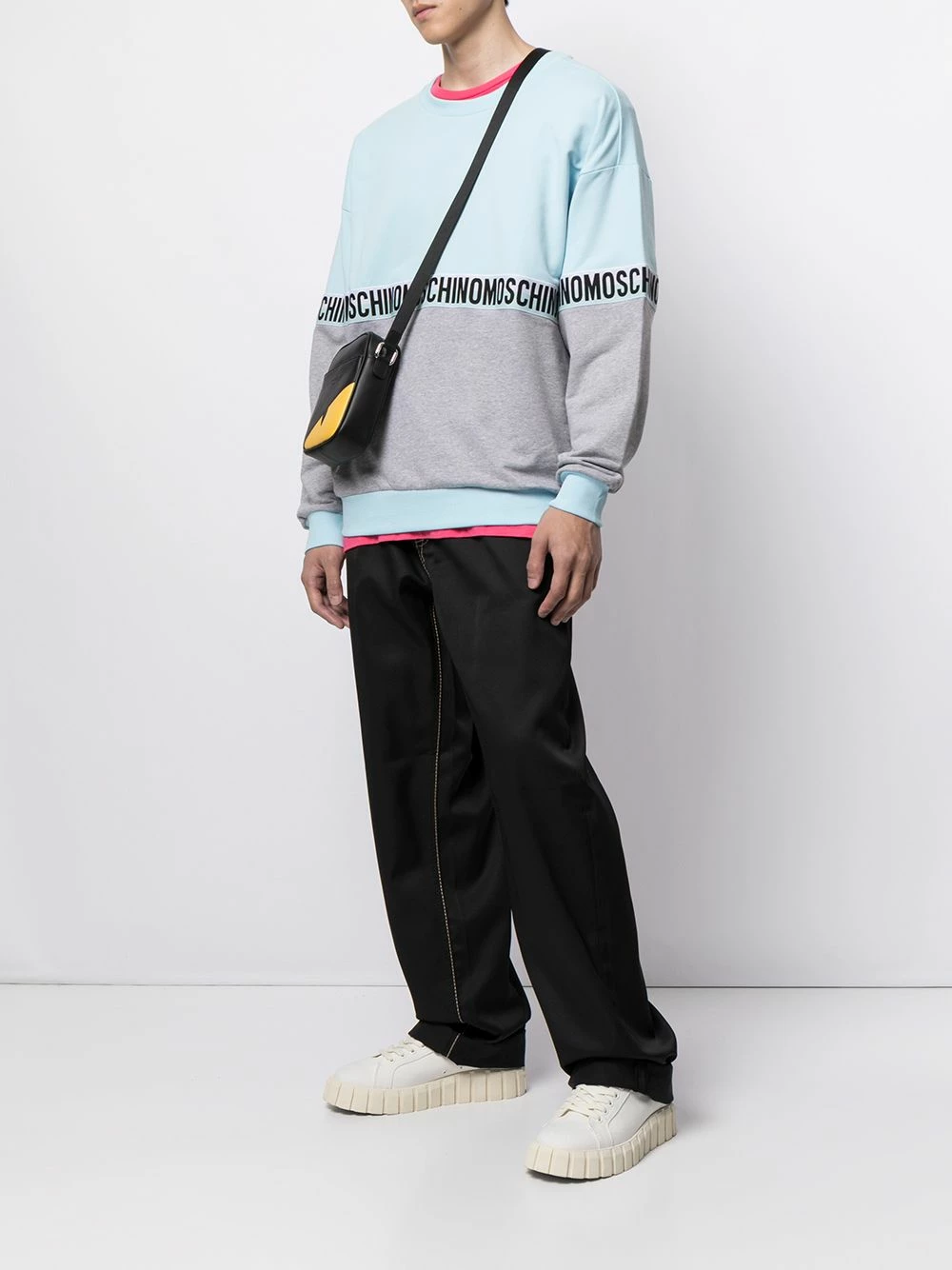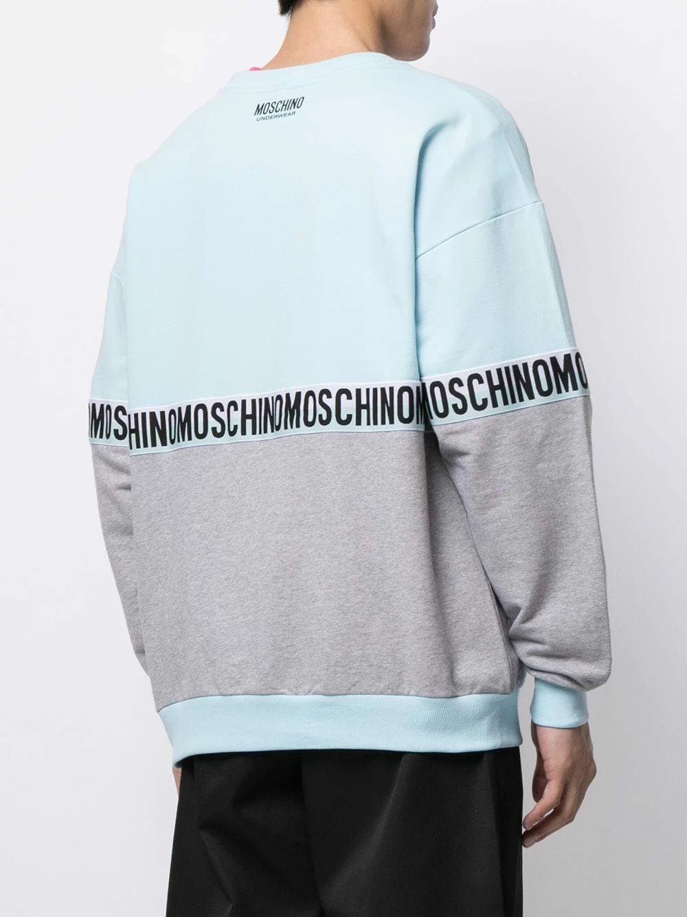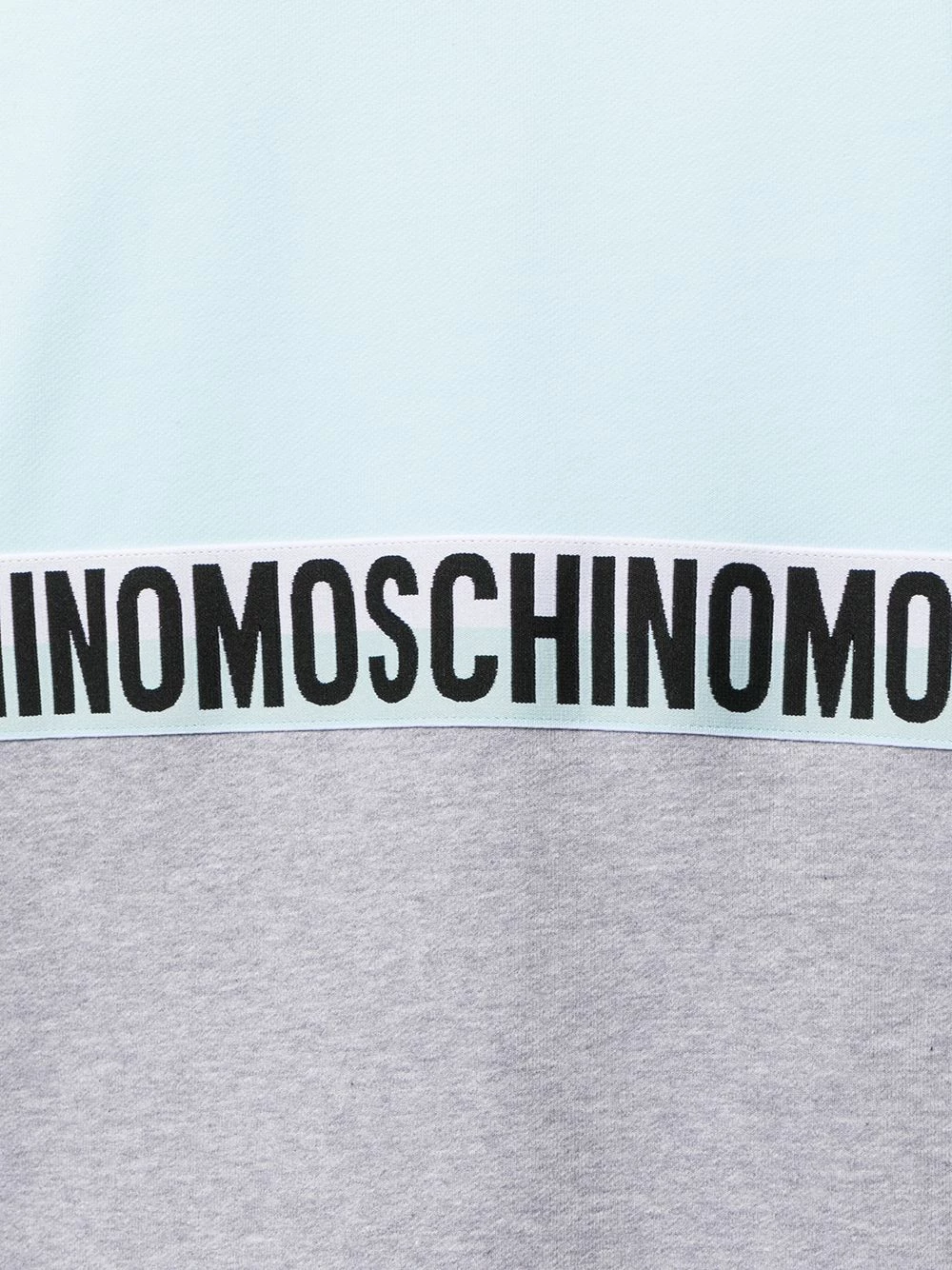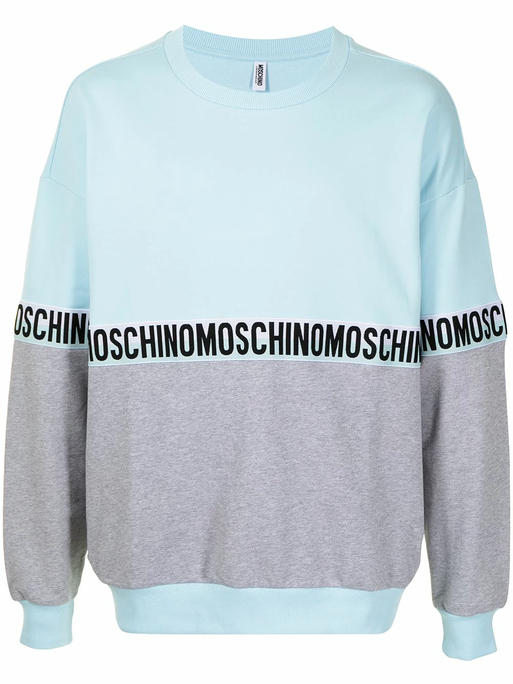 Light blue and grey panelling are separated on this Moschino sweatshirt by a logo-embellished band detail. Made from cotton, the comfortable casual-wear staple offers a colourful aesthetic.