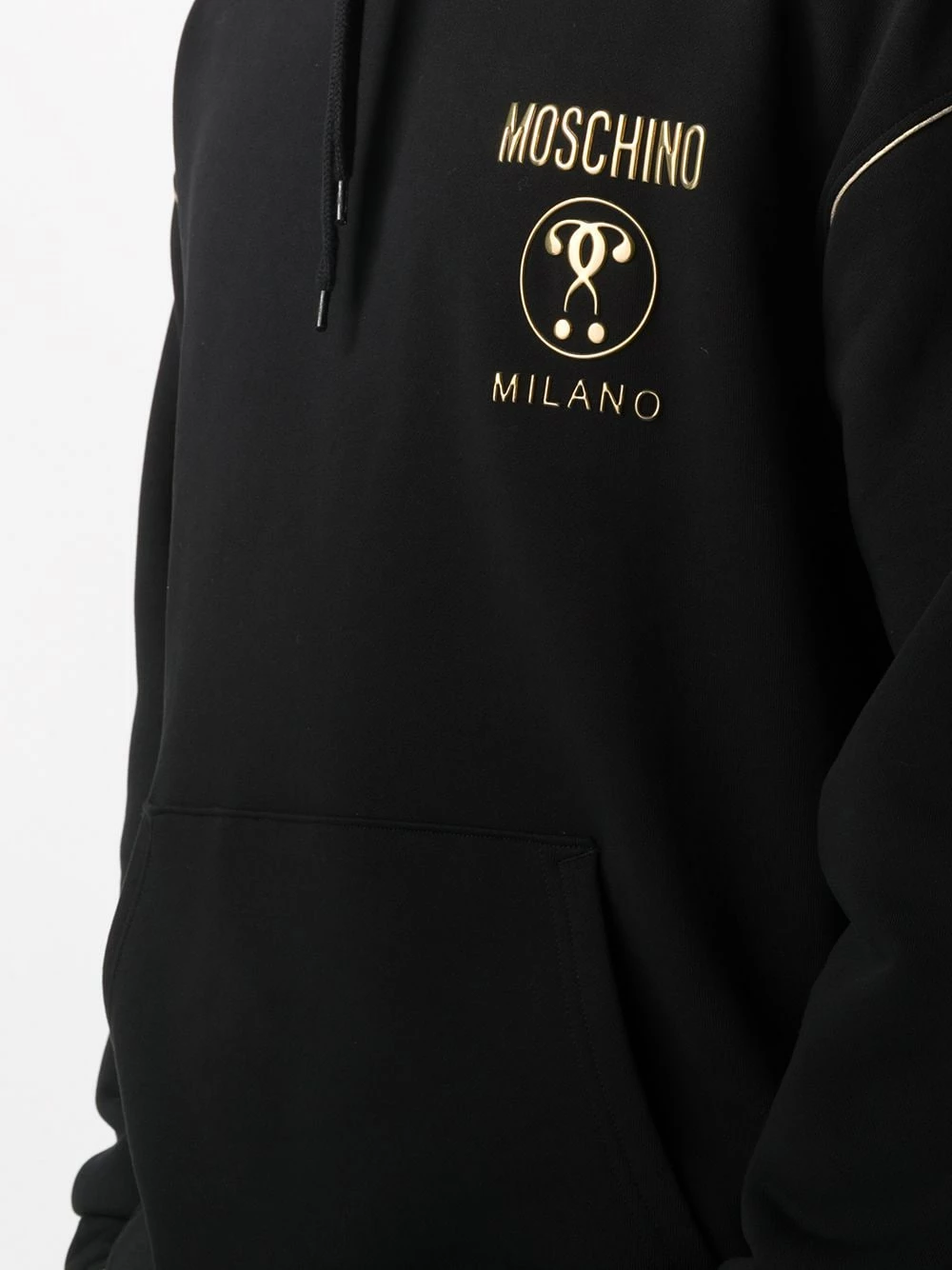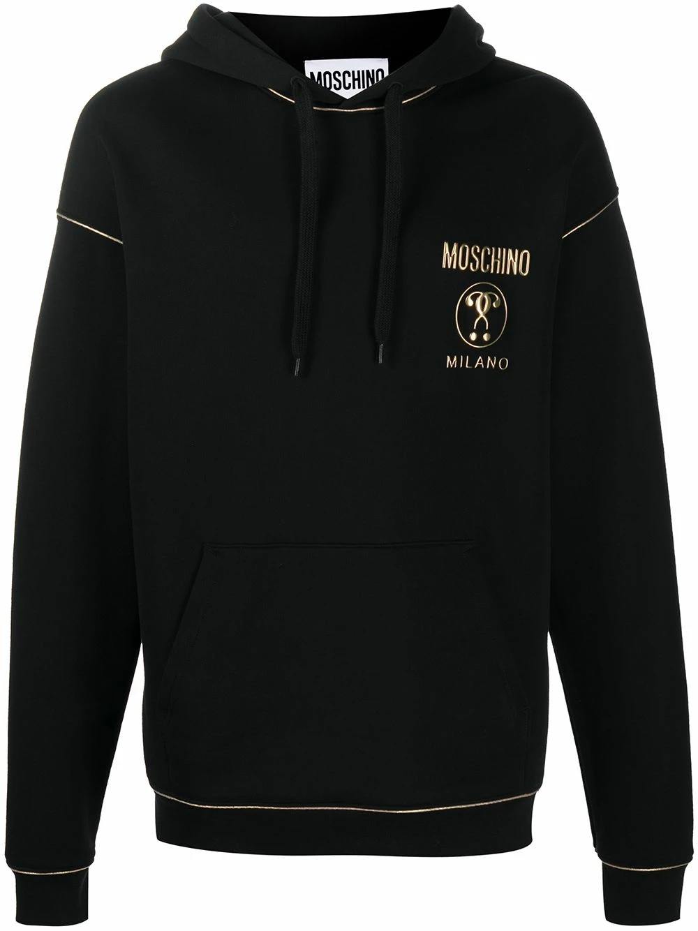 Take your streetwear style to the next level with this black Double Question Mark print hoodie from Moschino. The embossed logo to the front will make you stand out anytime. No question about it.