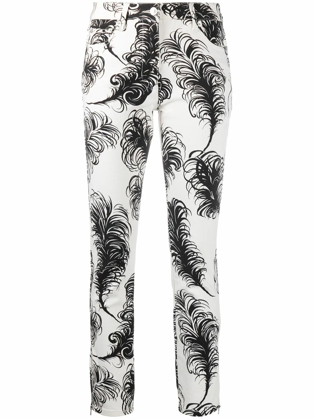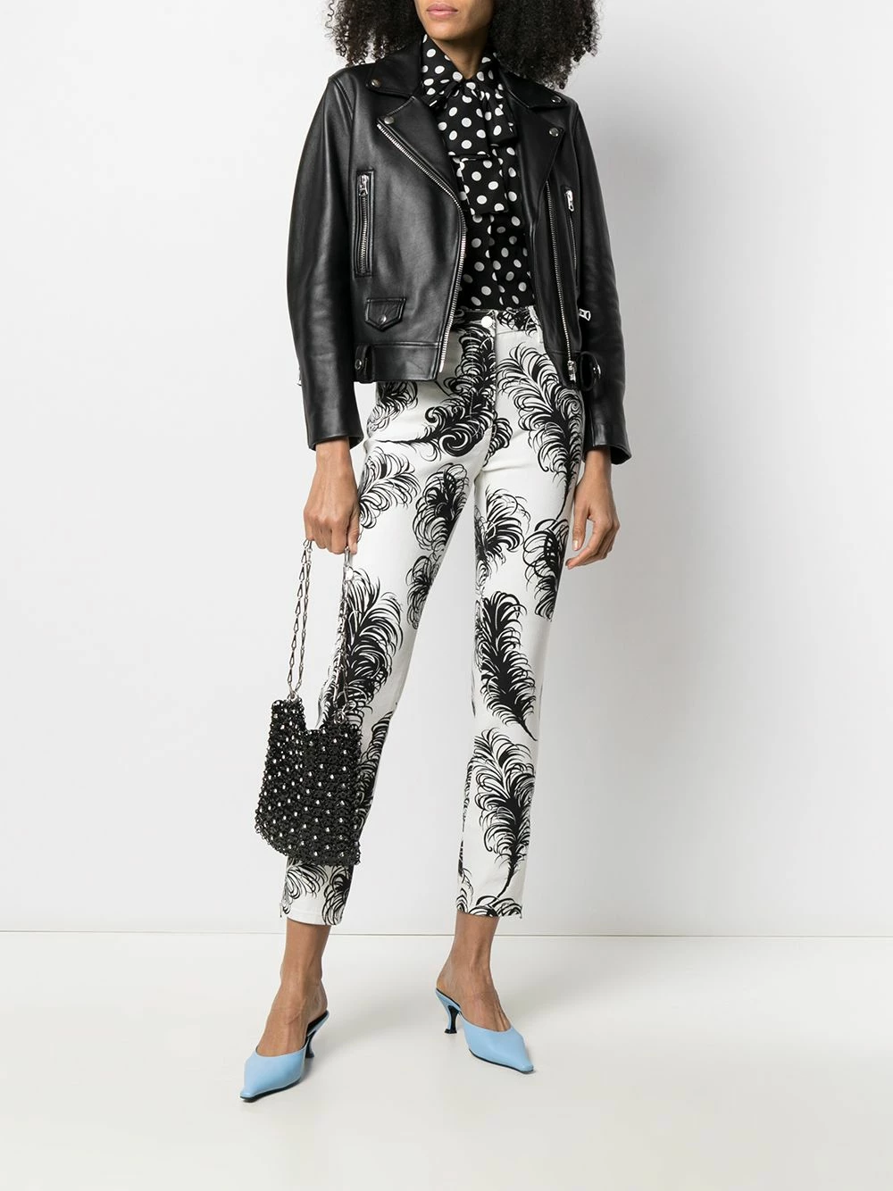 Life’s too short to dress boringly, right? Have a little fun with fashion with the help of these feather print cropped trousers by Moschino, boasting a high-waisted design and a skinny fit. You wear the trousers.