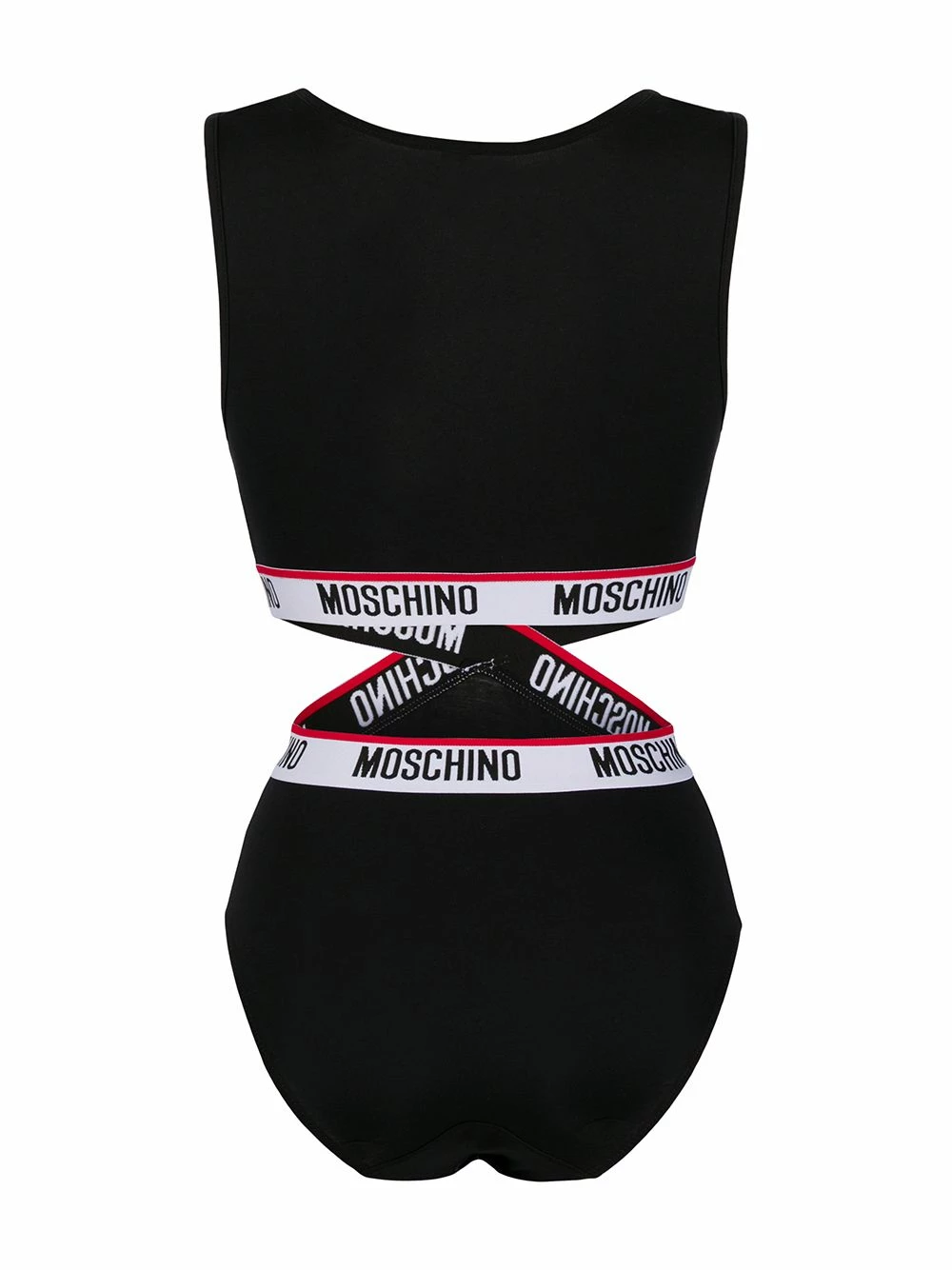 Whether you choose to wear it under clothes or as an edgy top, this logo-tape cut-out body from Moschino will ensure you feel confident on all fronts. Designed with a plunging v-neck and cross-over logo bands, this stretch-fit piece hits all the right notes.