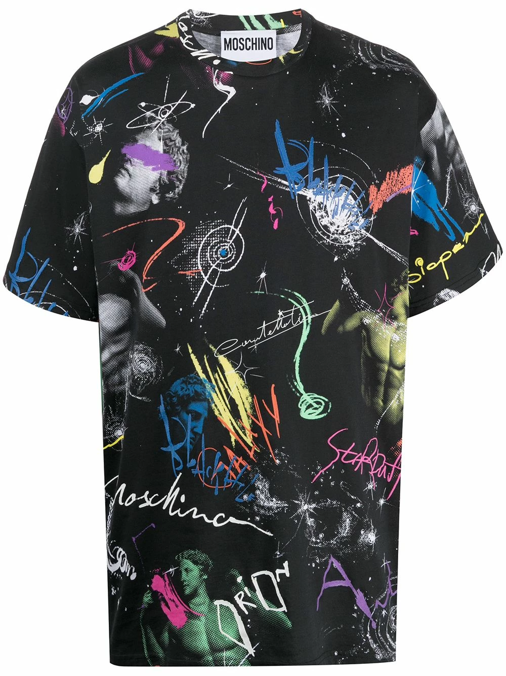 Set the scene with astrological design. The all-over print of this Moschino T-shirt will make an instant imprint. Your out-of-this-world style is sure to stand out.