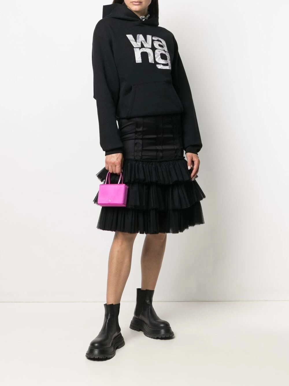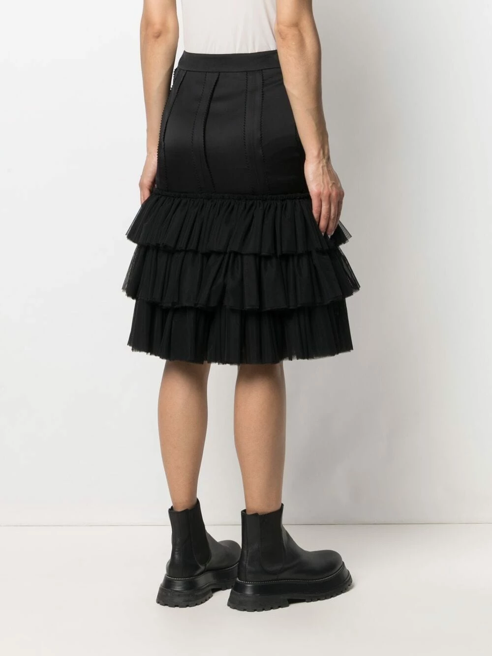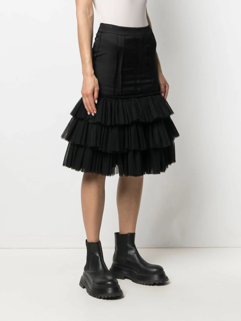 You’ll stop wearing black when they invent a darker colour, right? Crafted with ruffled detailing, this high-waisted skirt from Moschino is the perfect choice for a refined bold look. They say one can never go wrong with black for a reason, after all…