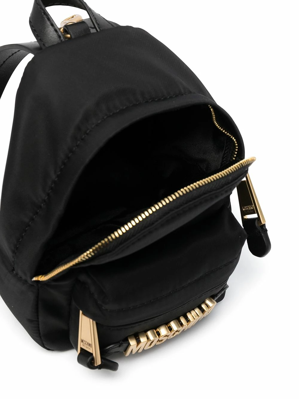This bag might be mini, but Moschino knows how to make a mighty impact. With the addition of this gold-tone logo plaque design, your accessory collection will be shining bright. Get ready for compliments.