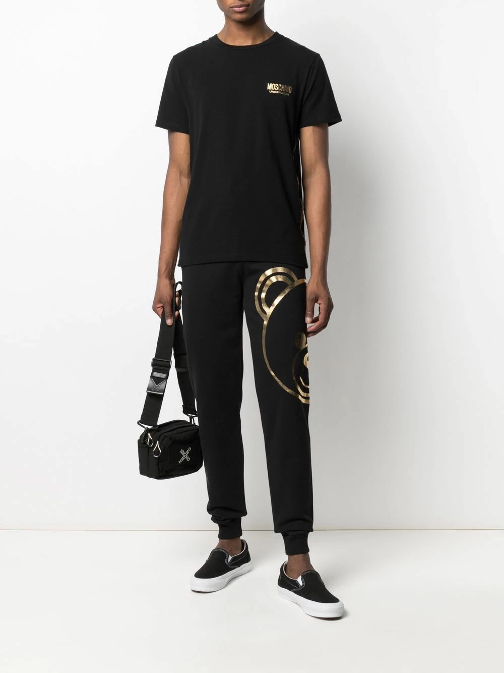 Moschino’s T-shirt is a departure from its relatively maximalist design sensibility. It’s simply detailed with a logo at the chest and the brand’s signature Teddy Bear and chain motifs.