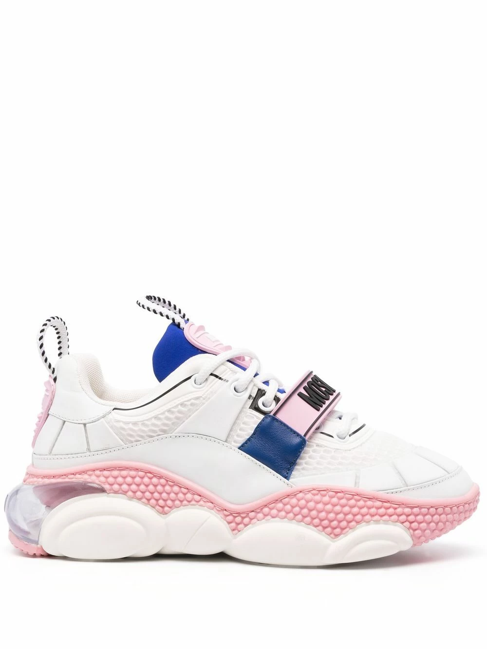 In a homage to Franco Moschinoโs iconic 1988 collection, the Teddy Bear is reinvented season after season. In these multicolour Teddy Pop sneakers, the Italian brand’s mascot is presented as a chunky rubber sole, reflecting the Italian brand’s playful essence.