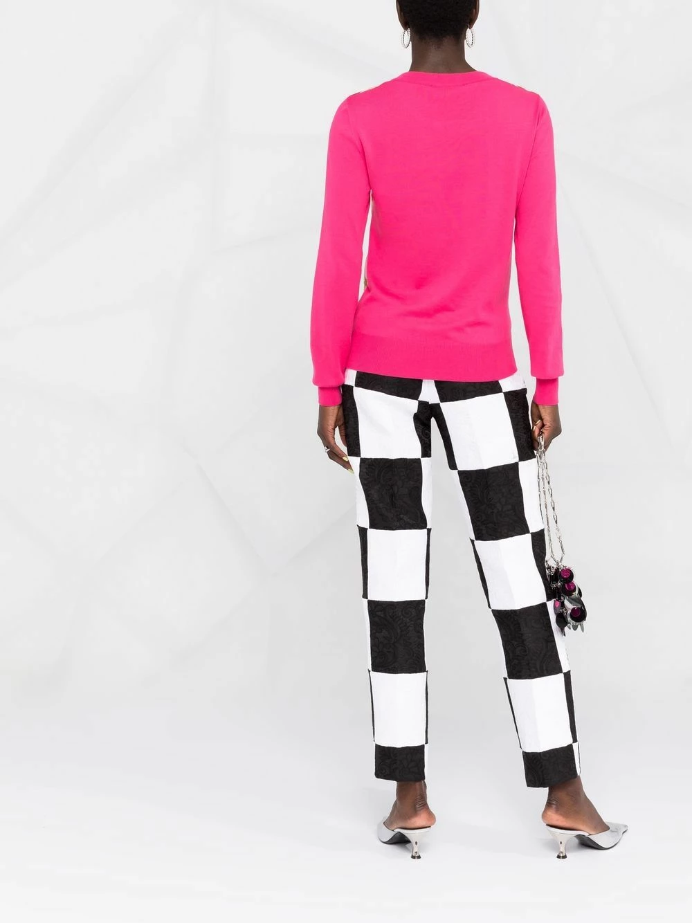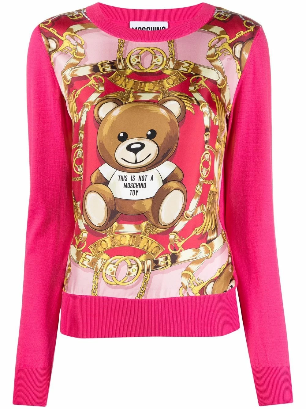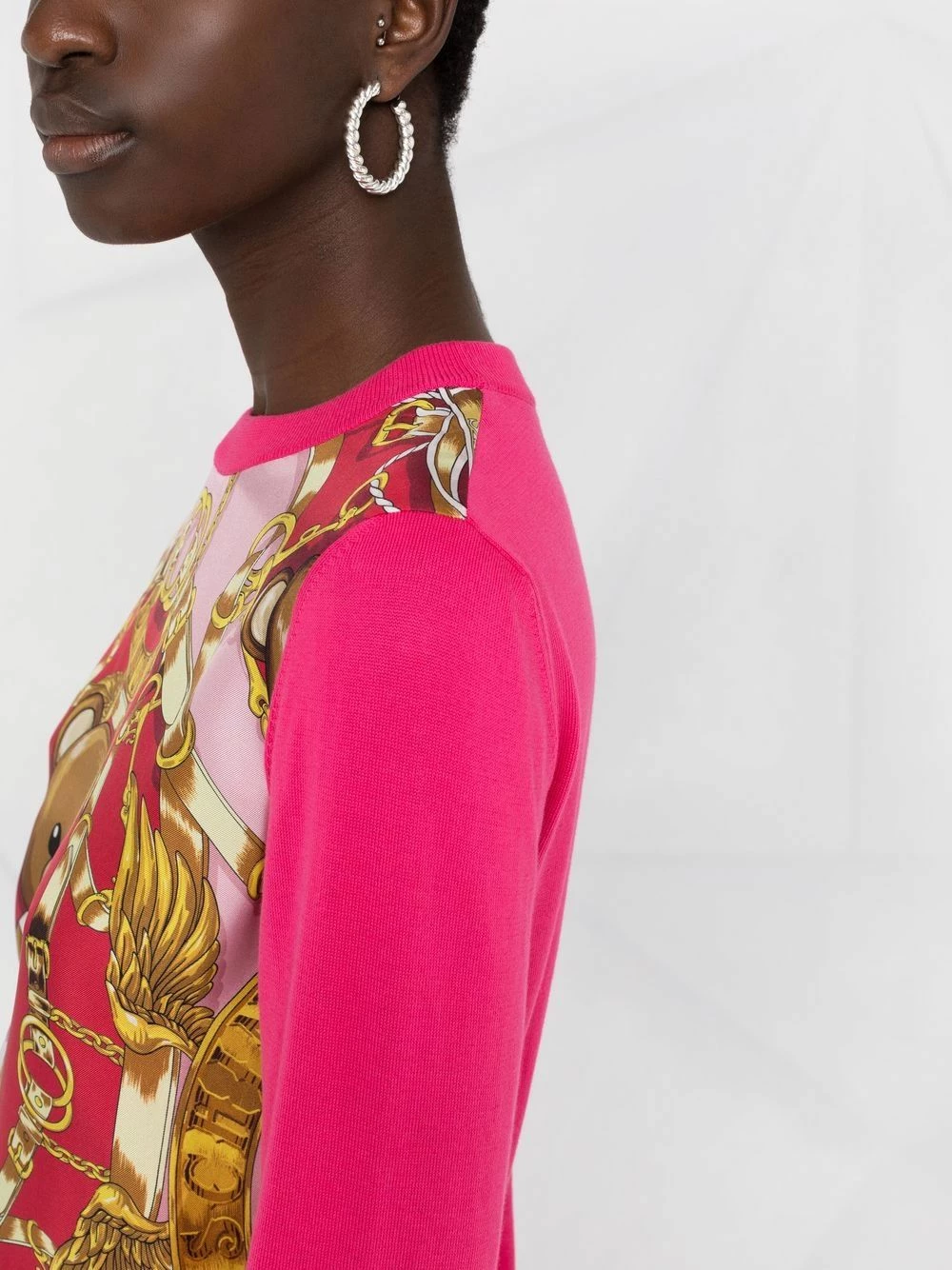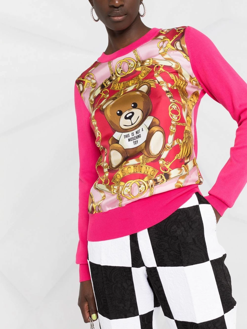 This knitted top adheres to Moschino’s signature eye-catching designs. Boasting distinctive prints at the chest, including the ubiquitous Teddy Bear motif, it captures the brandโs flamboyant design approach.ย