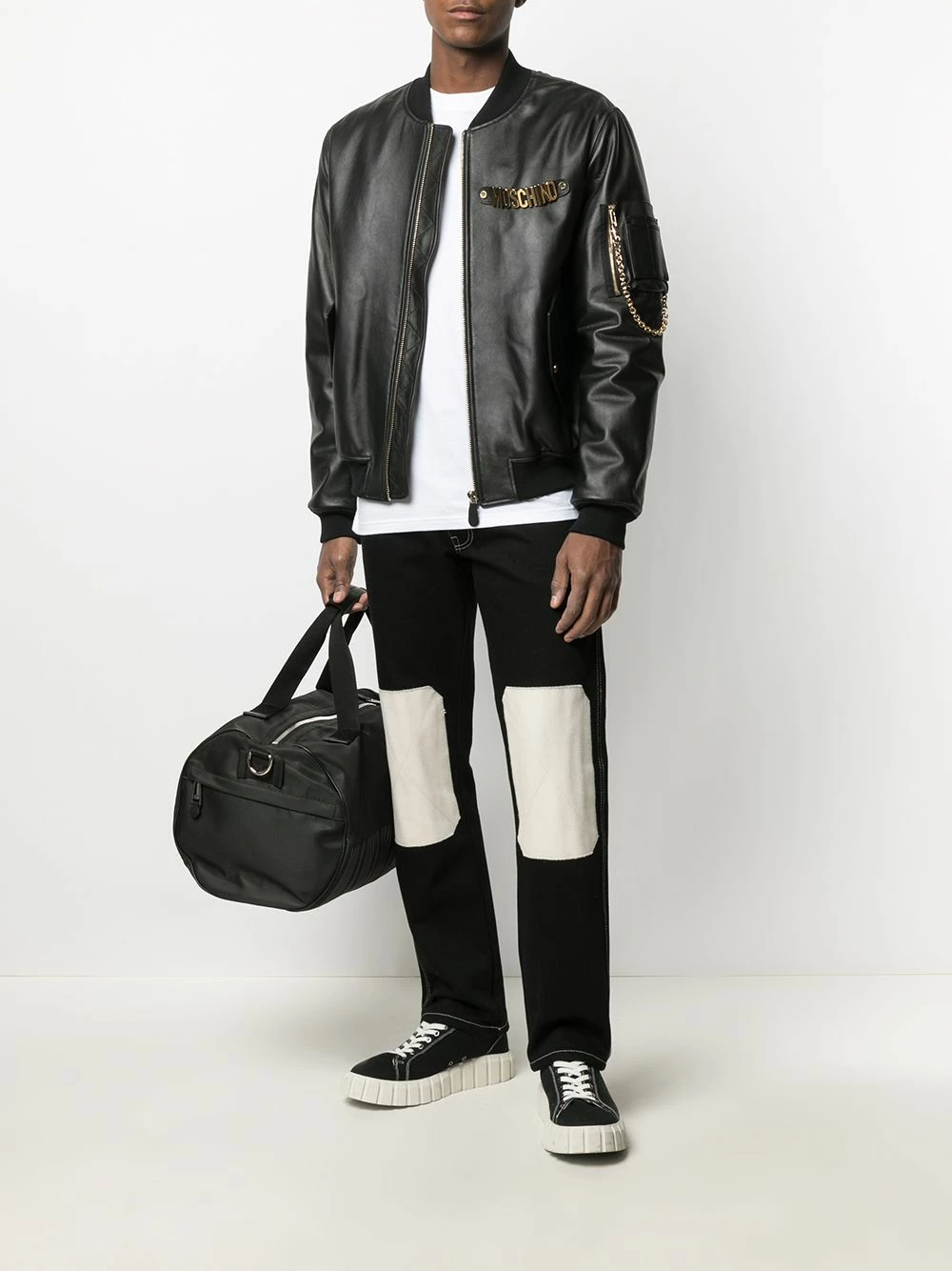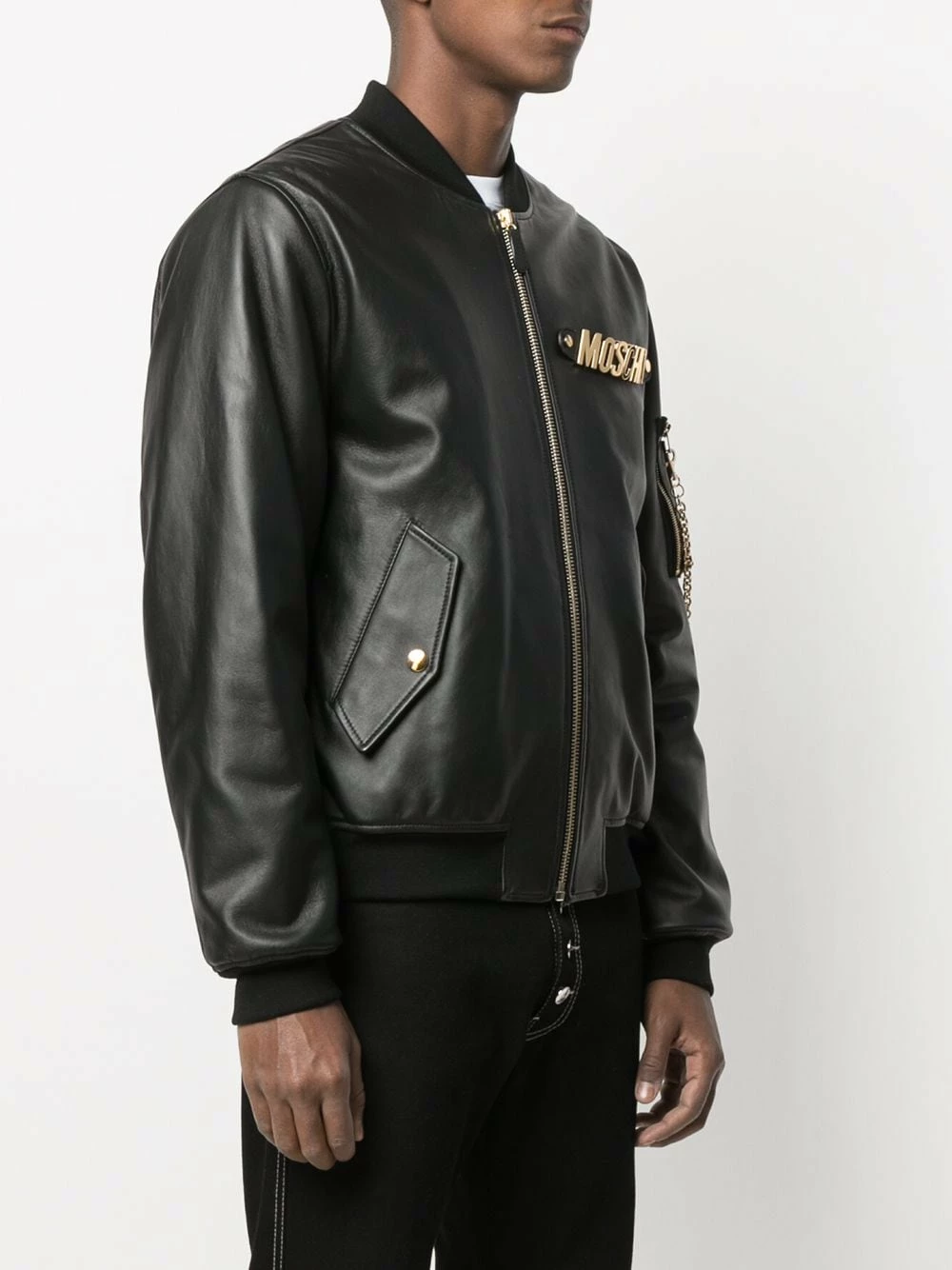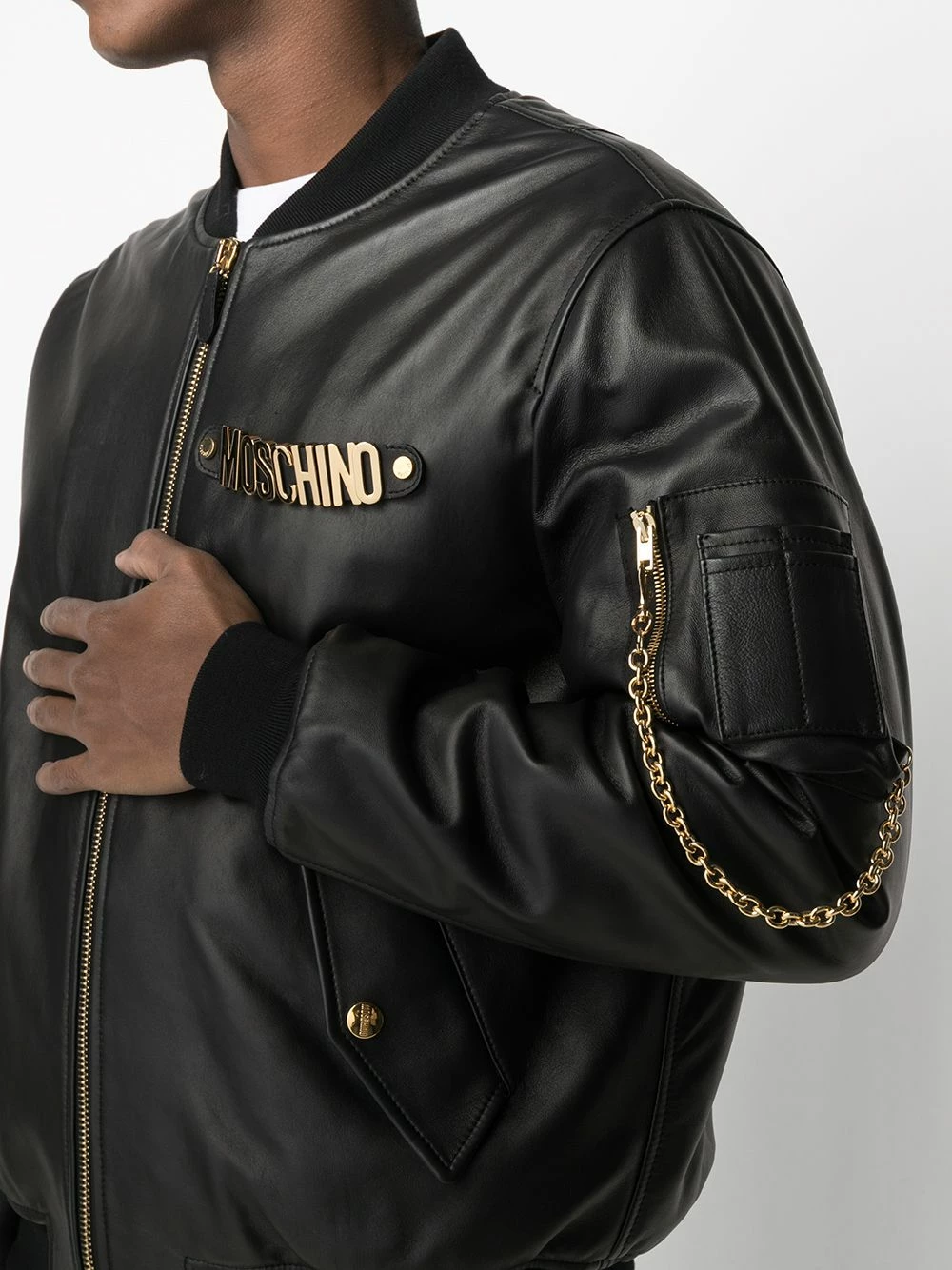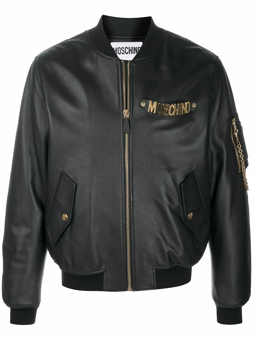 Moschino takes your jacket collection to another dimension. With gold-tone logo plaque at the chest and chain-link detailing at the arm. You’ve set the standard for your next update.