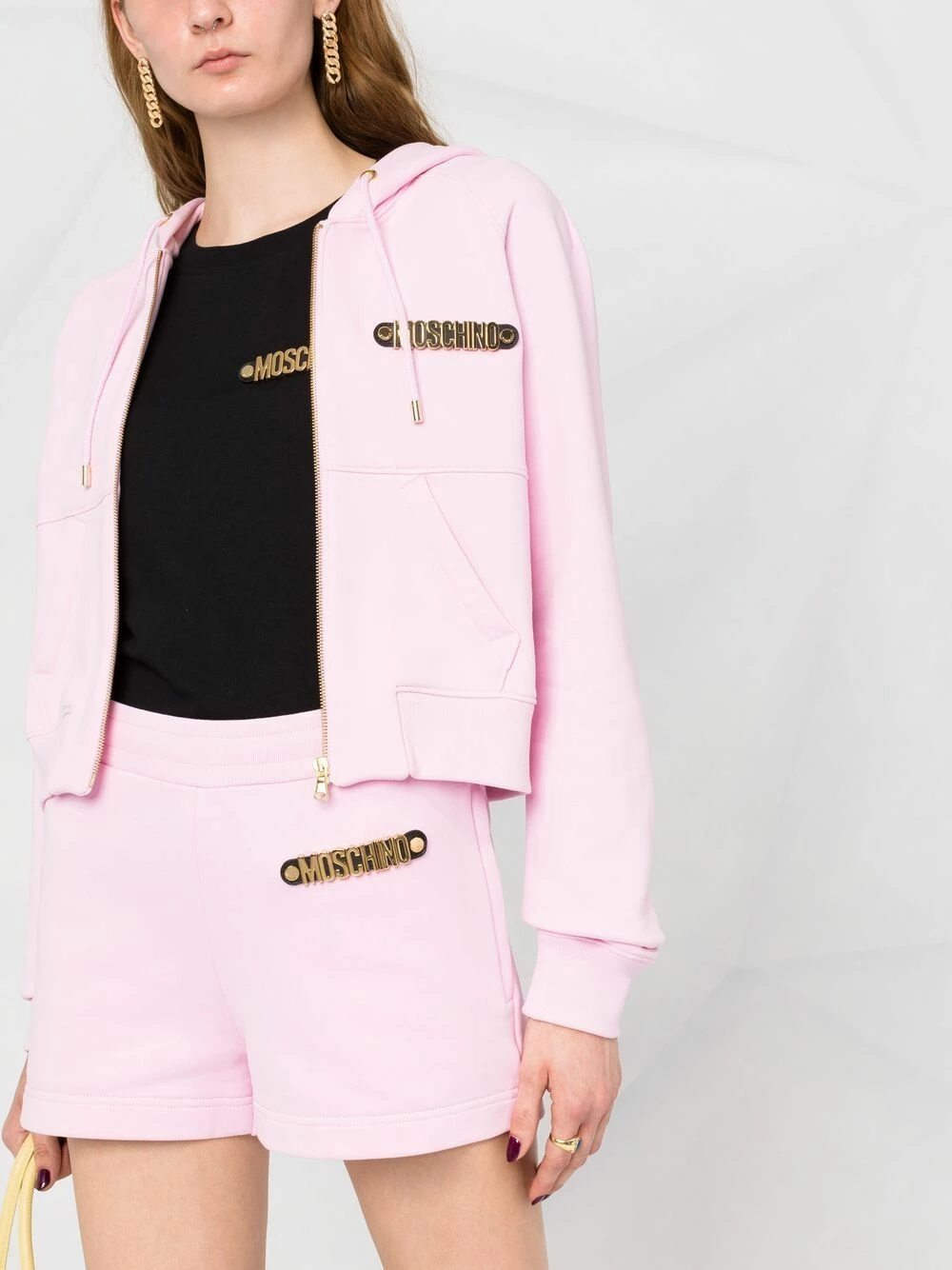 You’re about to go to the gym? Then do it in style. Boasting a gold-tone logo plaque on the side, these Moschino track shorts will keep you sporty but chic.ย