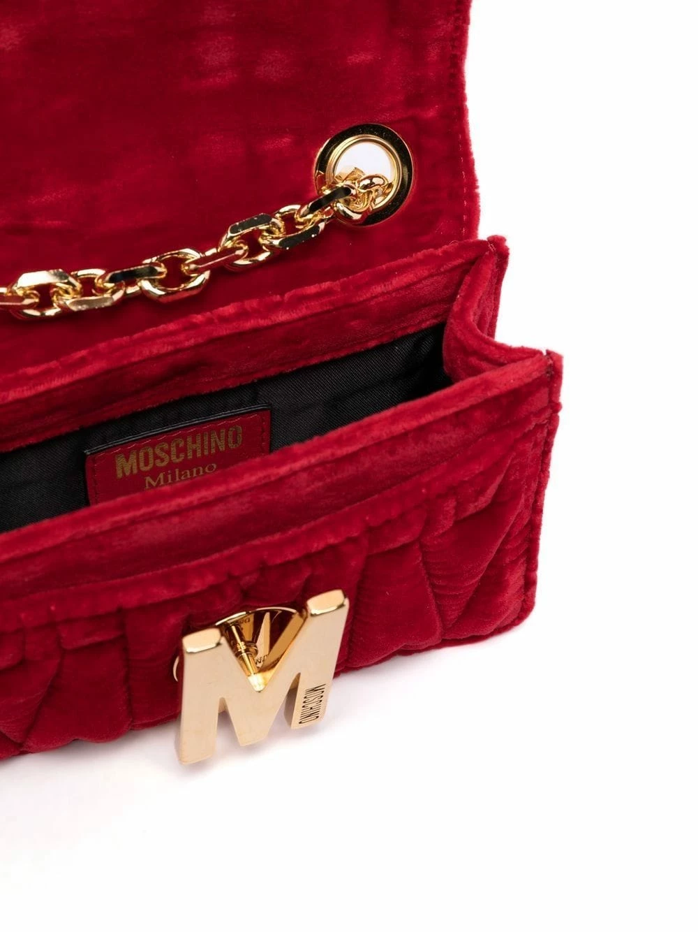 Moschino logo-plaque velvet crossbody bag
