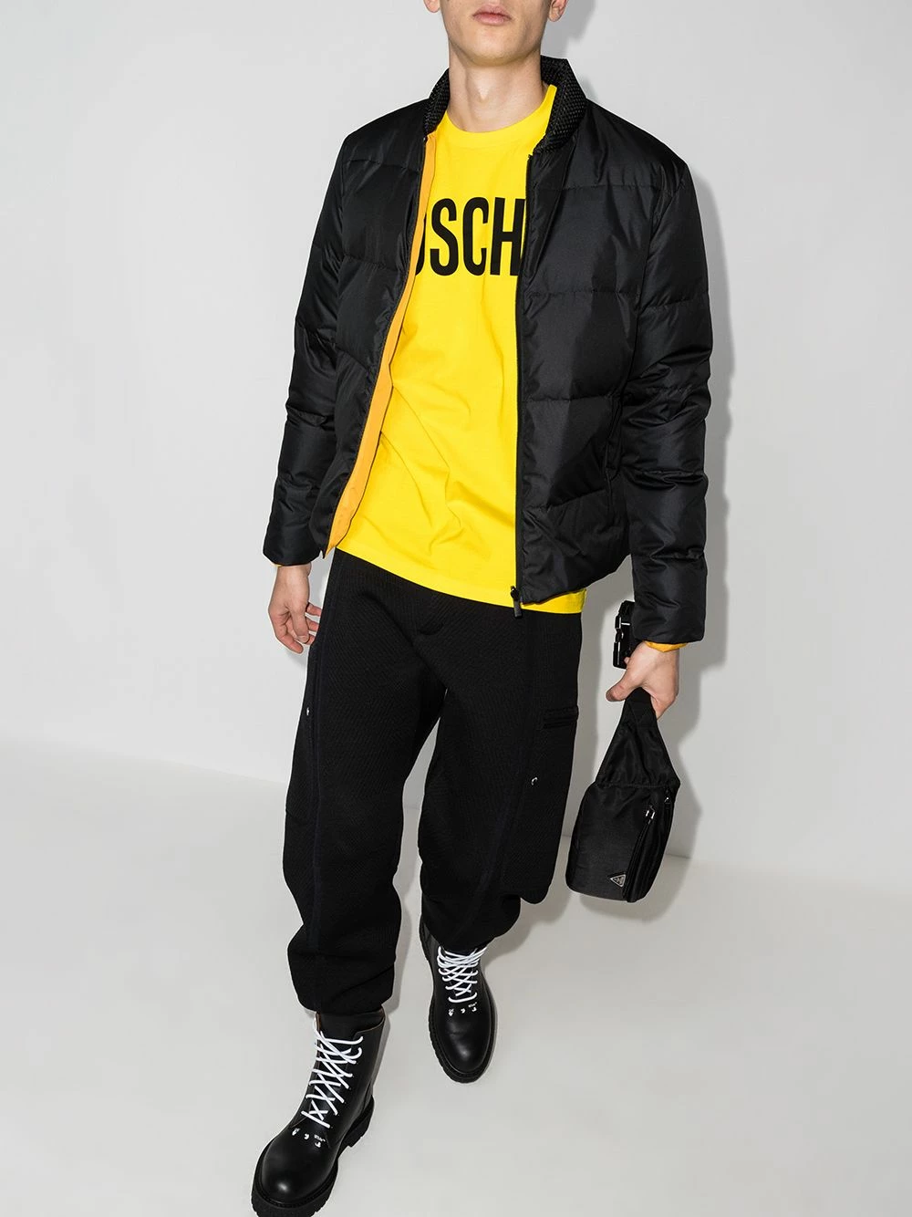 Constructed form bright-yellow cotton, we’re 100% sure this Moschino T-shirt will brighten up your day. Yes, even when you wake up and it’s Monday.