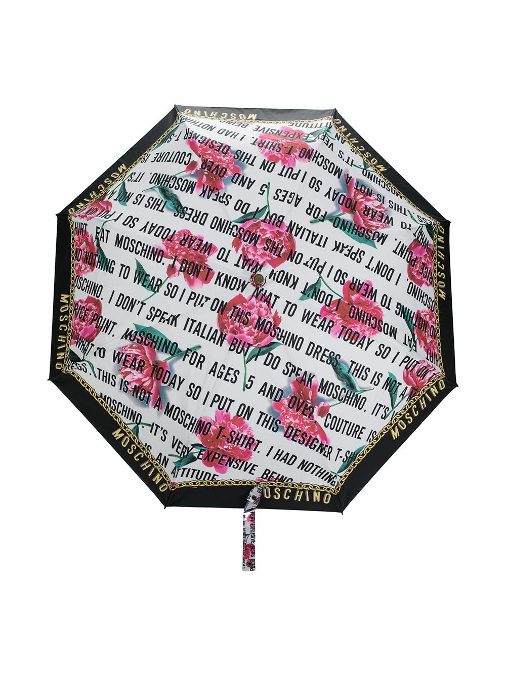 Fancy a trip? Well, Moschino is taking you on a trip to Italy with this ‘I don’t speak Italian but I do speak Moschino’ slogan print umbrella. No language skills needed, just this umbrella.