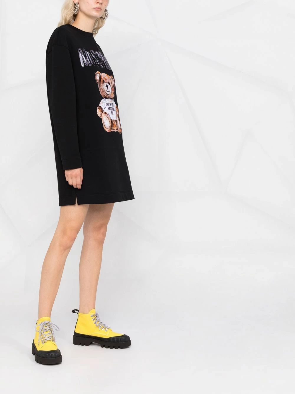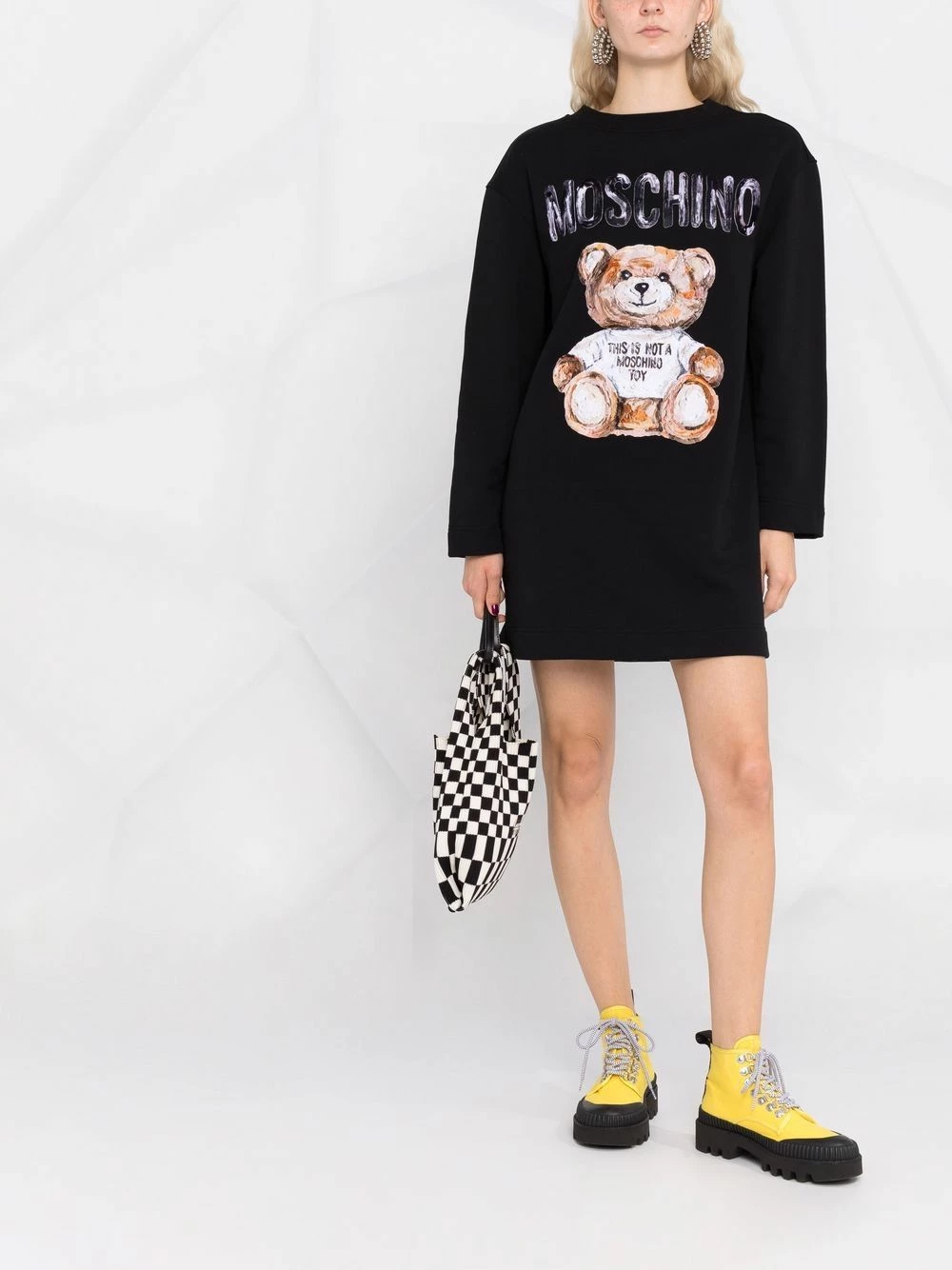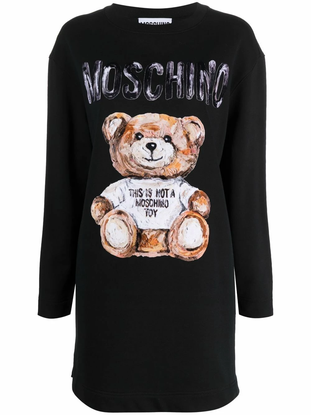 First debuted in 1988 by founder Franco Moschino, the Teddy Bear motif has been taking many forms over the years. In a black hue, this long-sleeve dress allows the iconic mascot to take centre stage. The style is finished with the logo print on the chest.