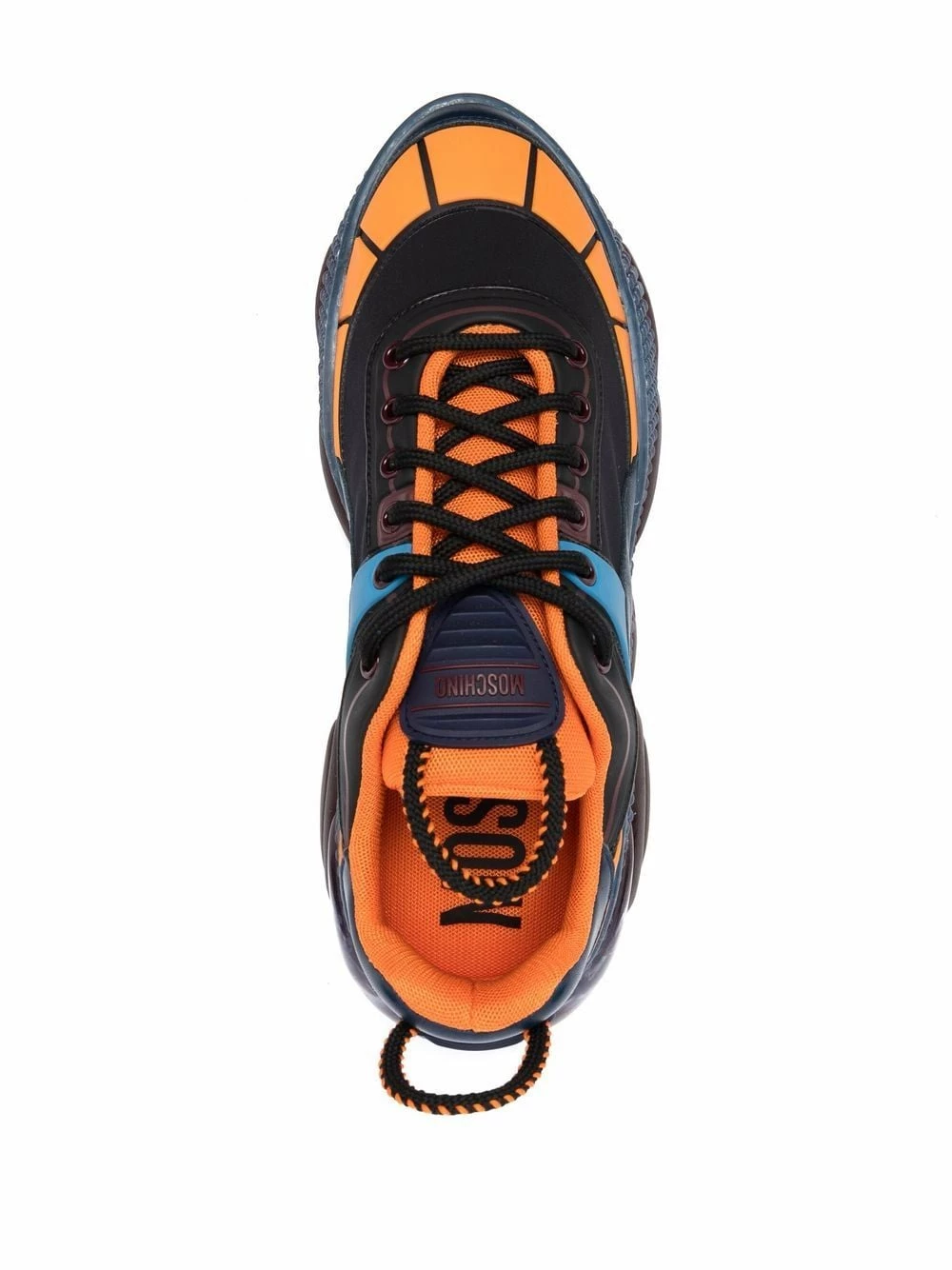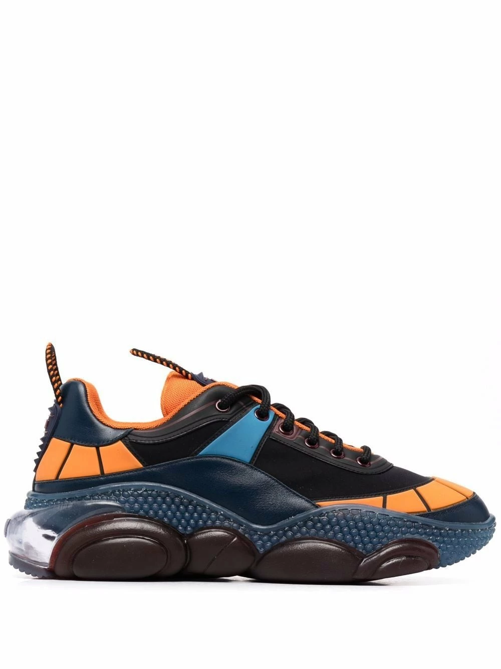 Garnering interest with every step, these round toe sneakers from Moschino are a sight to be seen. Produced in Italy, the multicolour multi-panelled silhouette takes its cues from technical designs and sits atop a signature Teddy Bear rubber outsole.