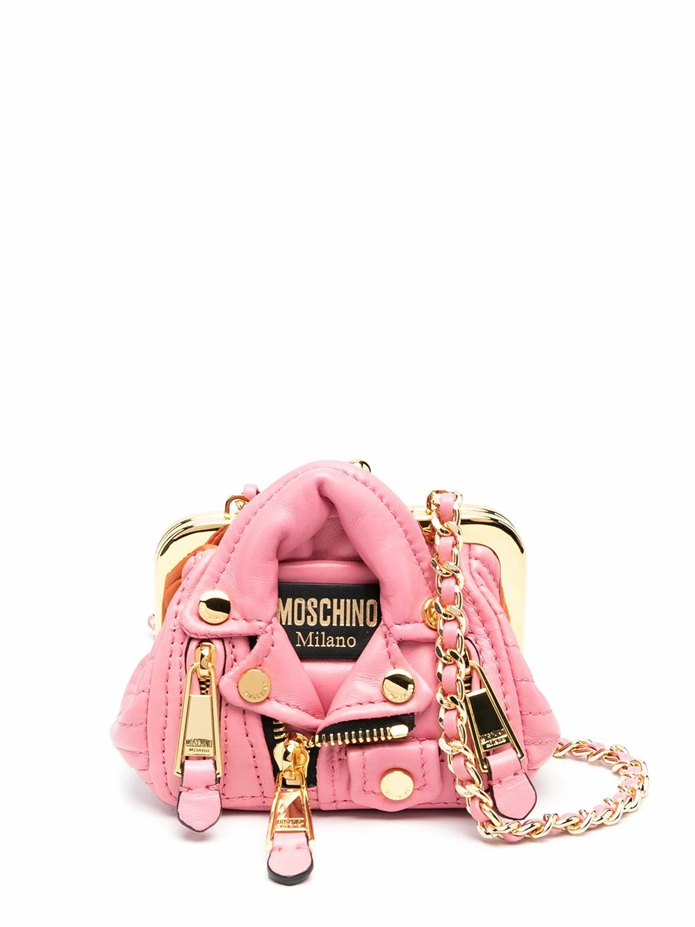 What if you could wear your favourite biker jacket all year round? Thanks to Moschino, now you can – in the shape of this Biker mini bag, that is. Which season is it?