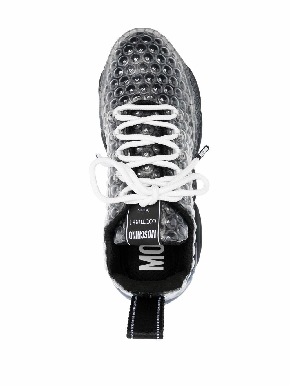 Best know for their tongue-in-cheek collections, the playful design of these Moschino trainers imitate bubble wrap, in reference to the increasing Sneakerhead scene. With a logo-print memory foam insole and signature Teddy Bear debossed soles, these trainers are as comfortable as their Double Bubble name suggests.ย
