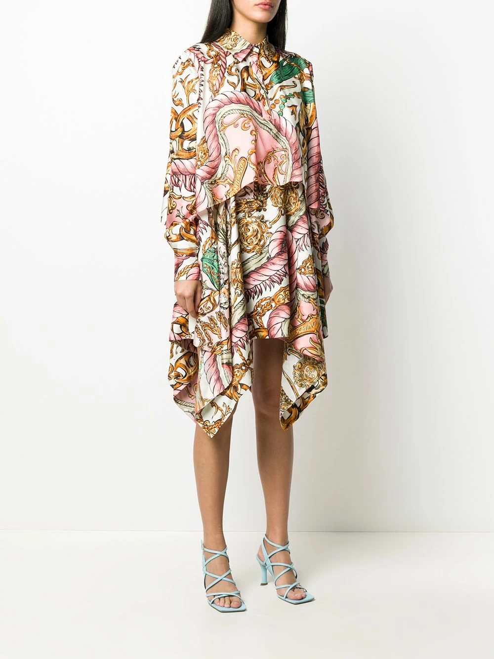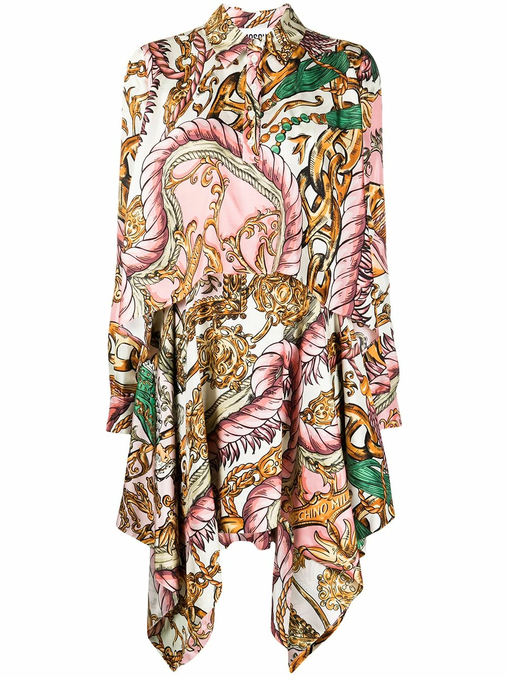 Do you like to make an entrance? By wearing Moschino’s silk printed dress you will certainly turn heads in whichever room you enter. It’s thanks to the bold mix-print of chains and ornaments, in addition to the dramatic handkerchief hem. Life’s too short for dull clothing.