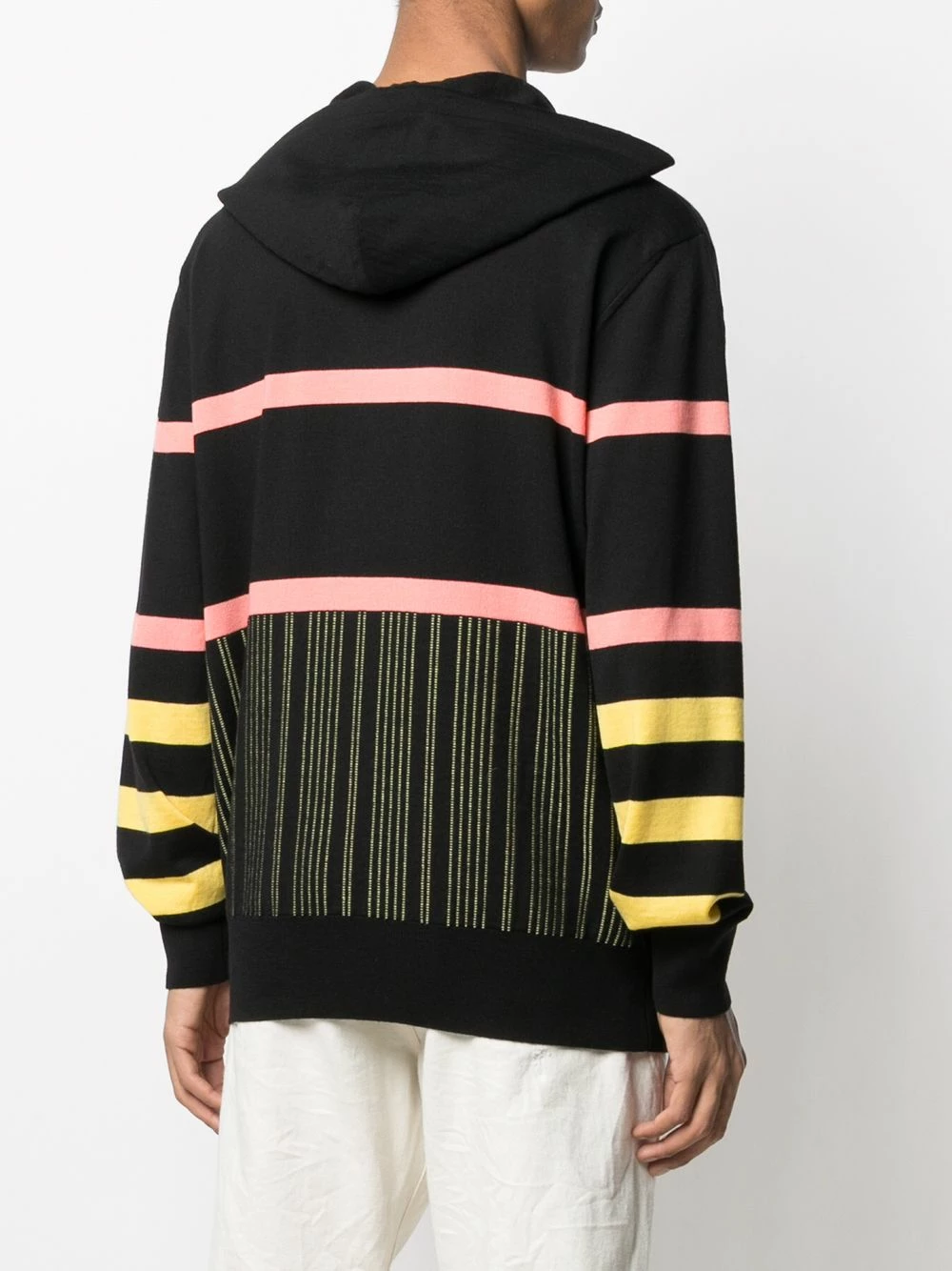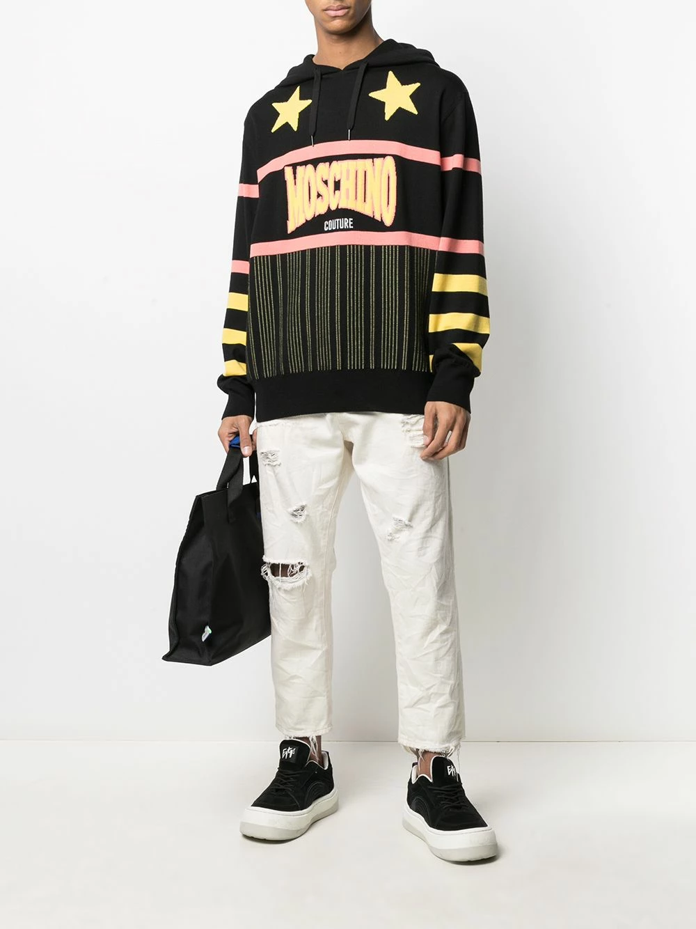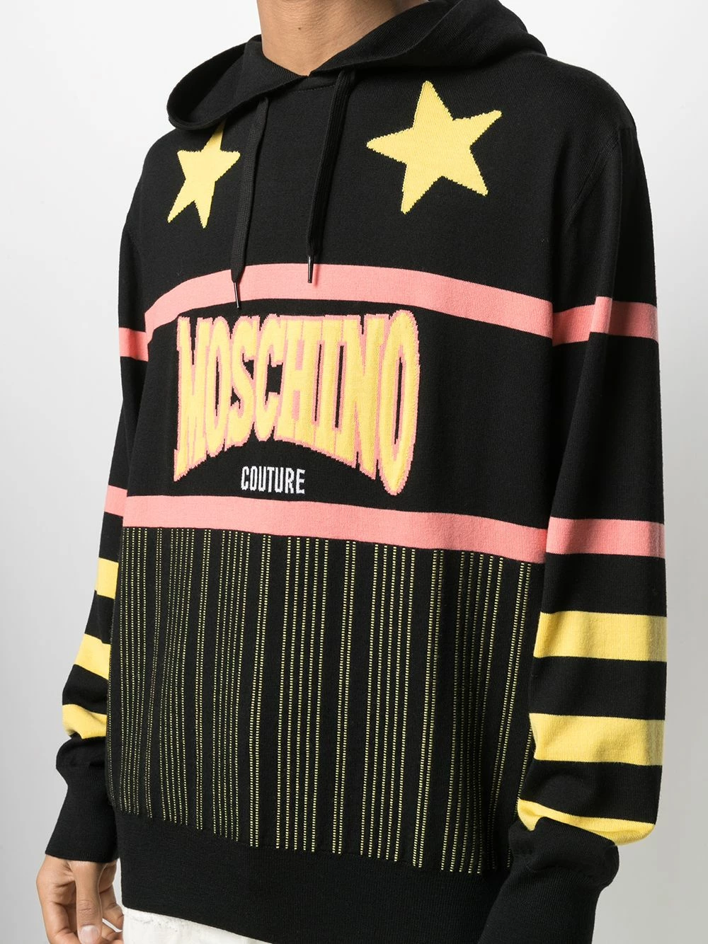 Fun fashion, courtesy of Moschino. Featuring an intarsia-knit logo and a striped pattern, this hoodie will add a pop of colour to your wardrobe. Be bold.