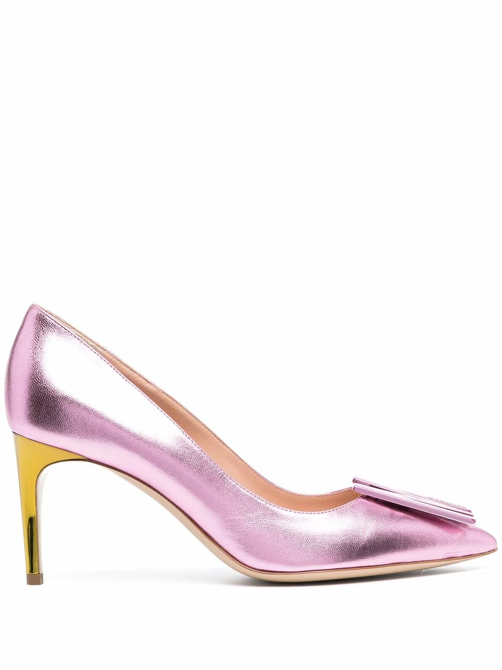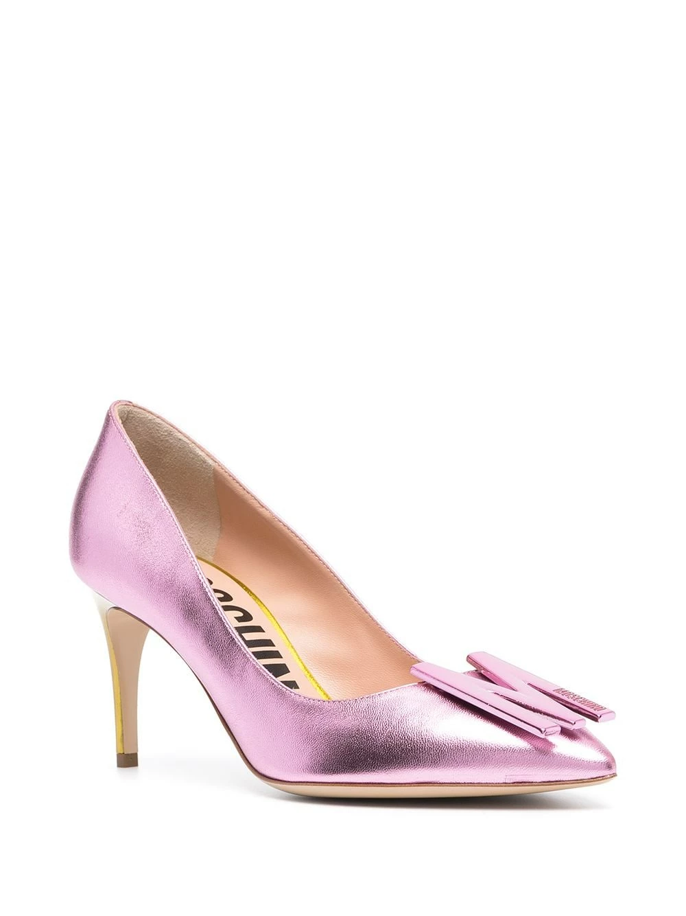Think pink with Moschino’s pumps. From the branded insole to the M logo plaque, this metallic pair pledges allegiance to Moschino. Salute.