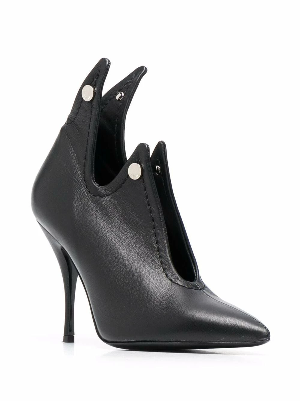Not unfamiliar with creating accessories that look like everyday objects – let’s not forget the infamous croissant bag – Moschino plays with a fashion favourite for AW21 – the classic moto jacket. Its recognisable button-down lapels are incorporated into the design of these high-heel pumps for a contemporary, rock and roll feel.