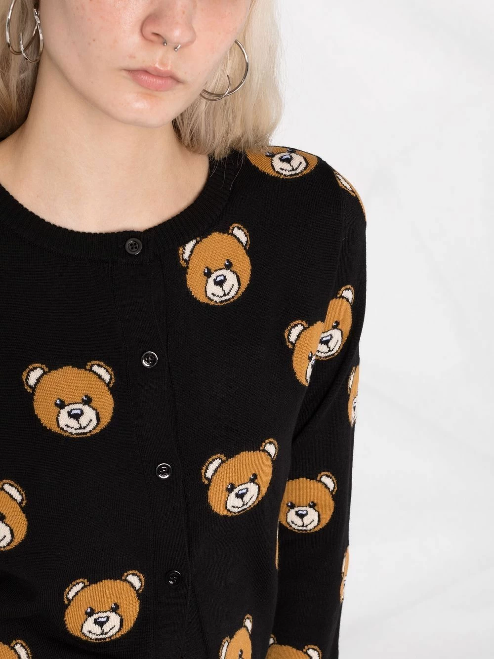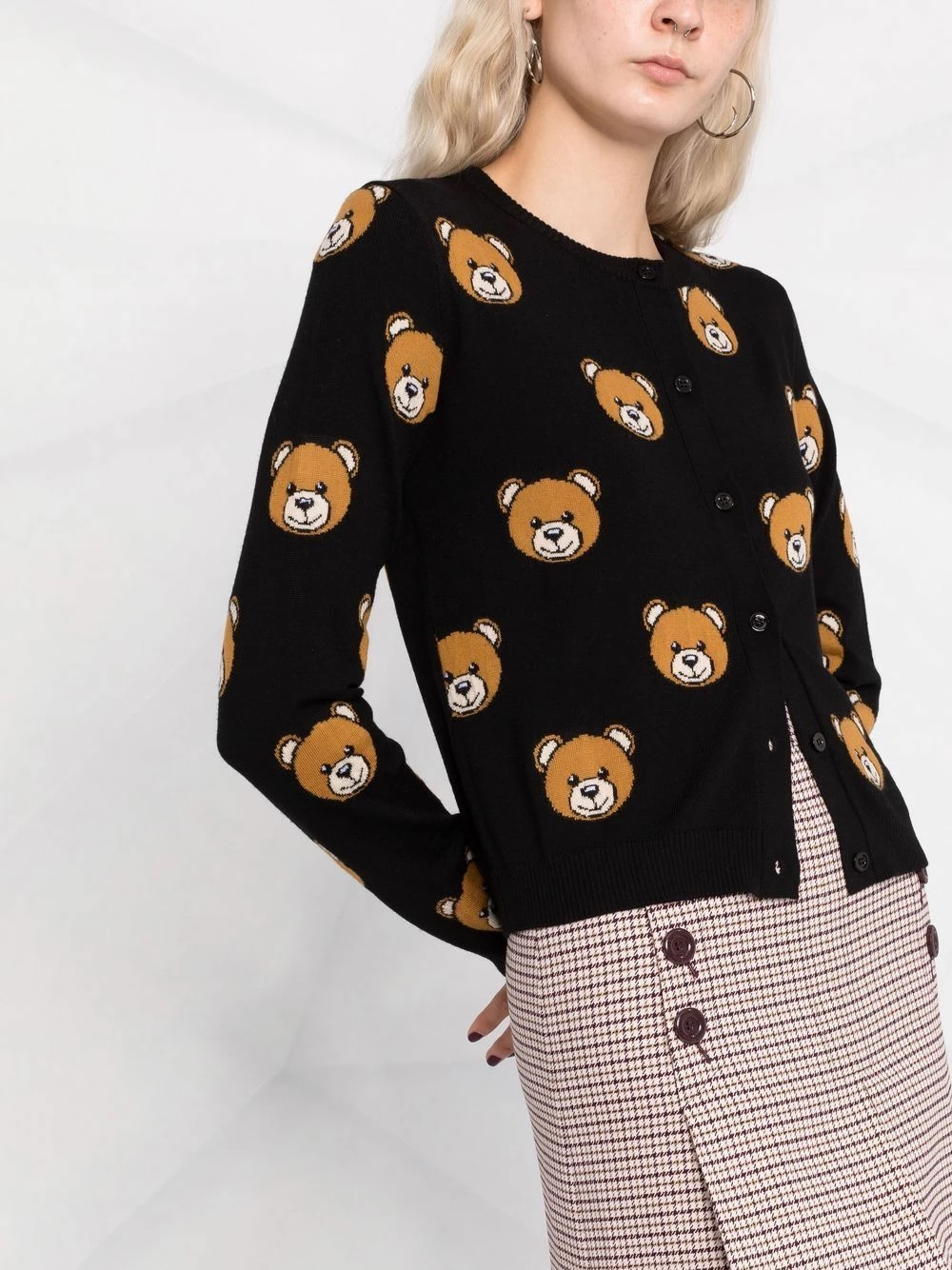 A mainstay for the brand, Moschino’s Teddy motif appears on a multitude of items season after season and this time, it is a black cardigan that has the honour. Soft and sweet, this virgin wool design continues Moschino’s playful aesthetic.