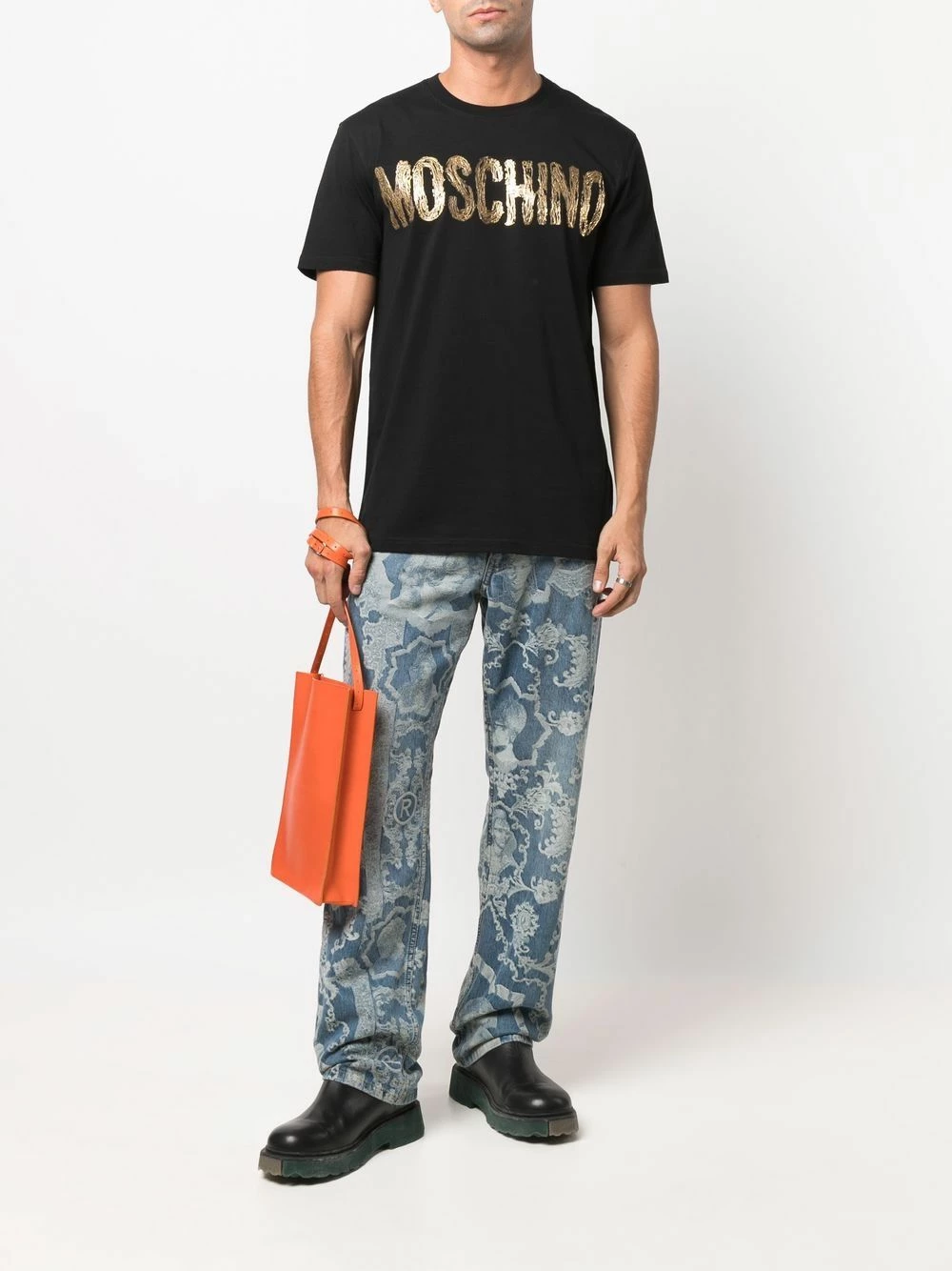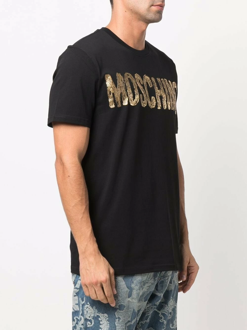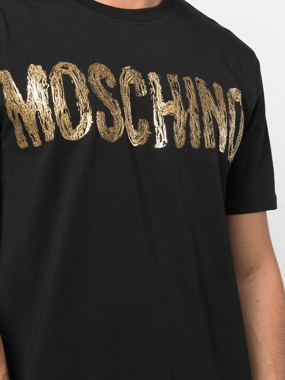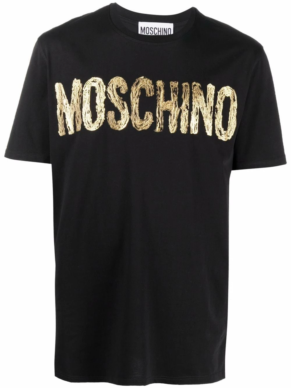 Never one to shy away from bold logos, Moschino presents this T-shirt. Crafted from soft cotton, the short-sleeved style is decorated with a foil-effect logo at the chest.