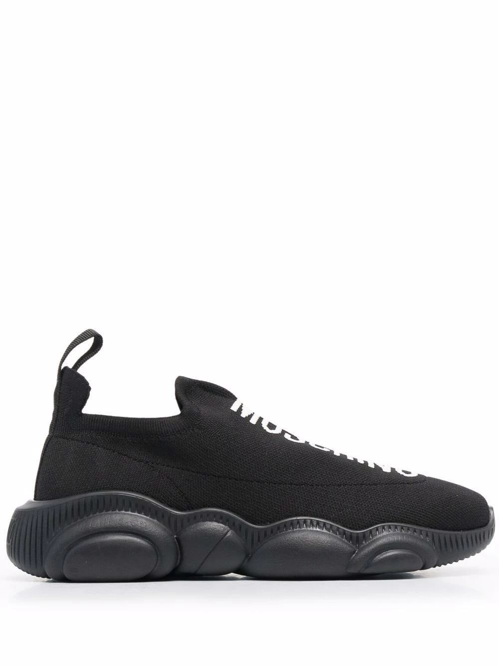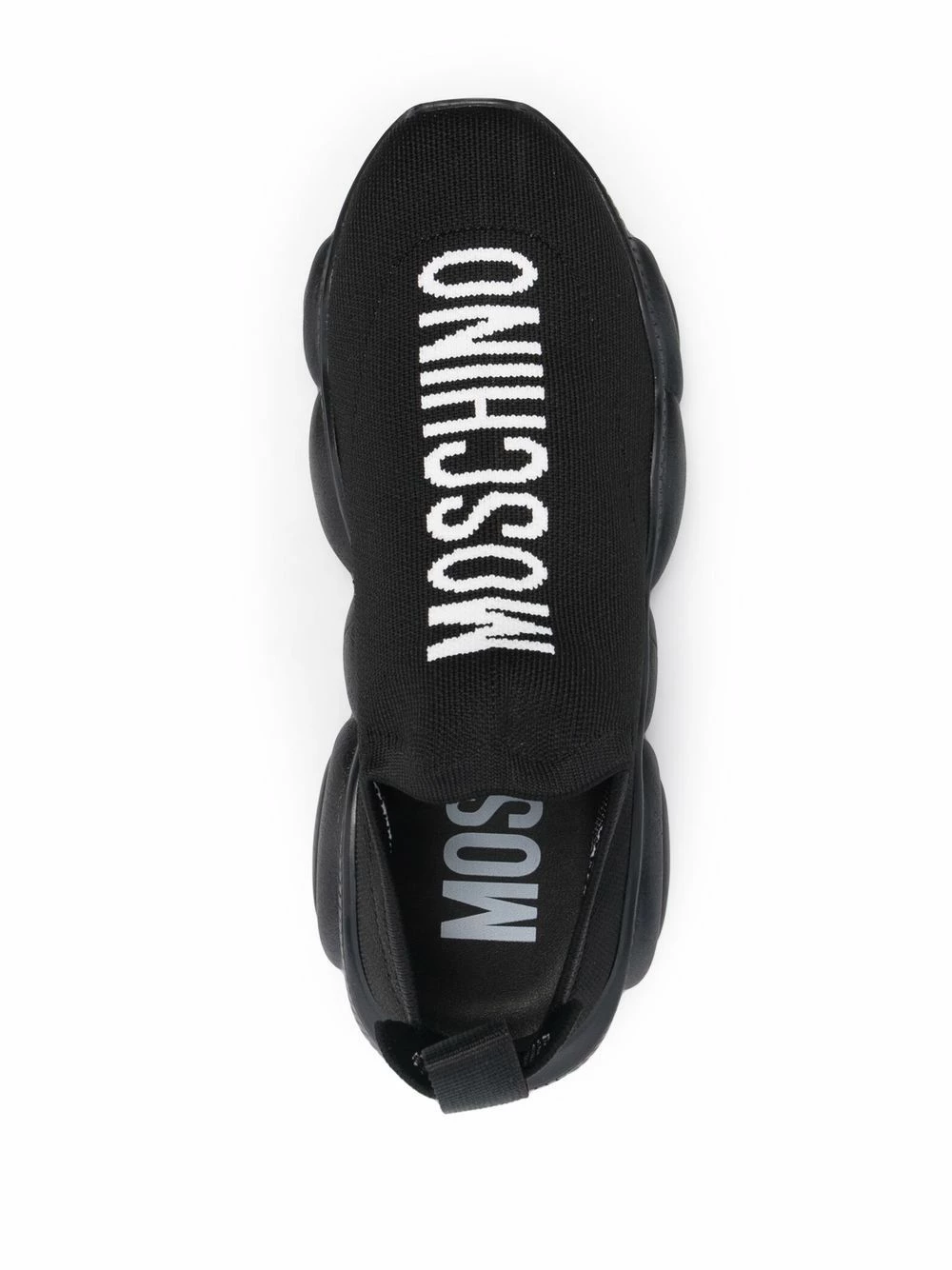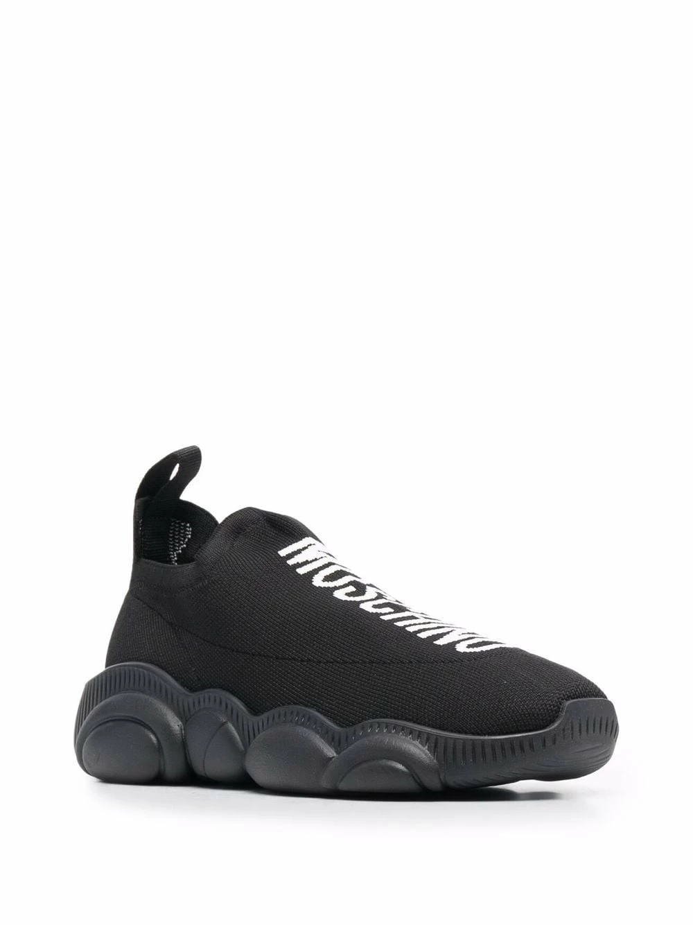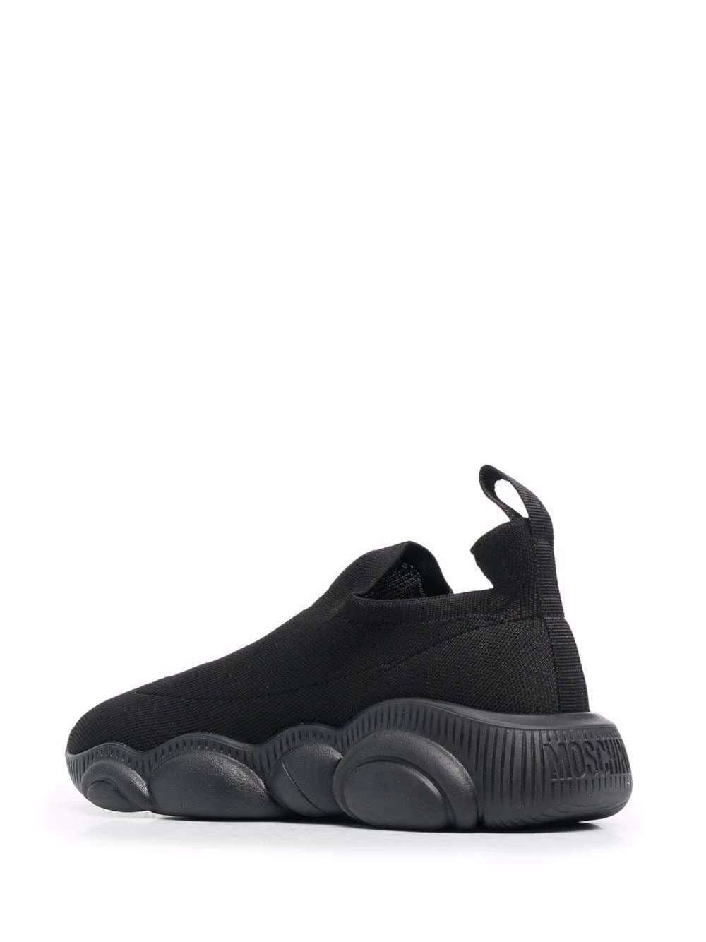Since the brand’s inception in 1983, Moschino has been known for creating designs with an innovative twist. Showcased in this pair of slip-on sneakers, the contemporary oversized rubber sole; which fits in with current streetwear trends, is crafted from the iconic Teddy motif and reads ‘This Is Not A Moschino Toy’.