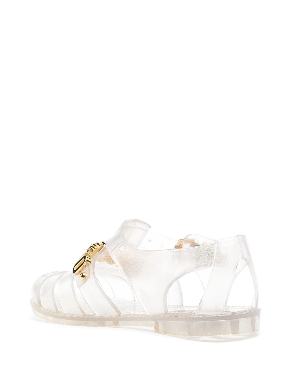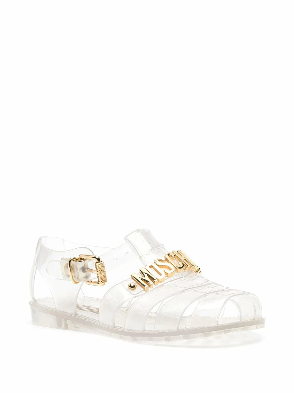 Step back in time with Moschino’s sandals. Reminscent of styles typically worn in childhood, they’re topped with a logo plaque to give them an edge. Forever young.