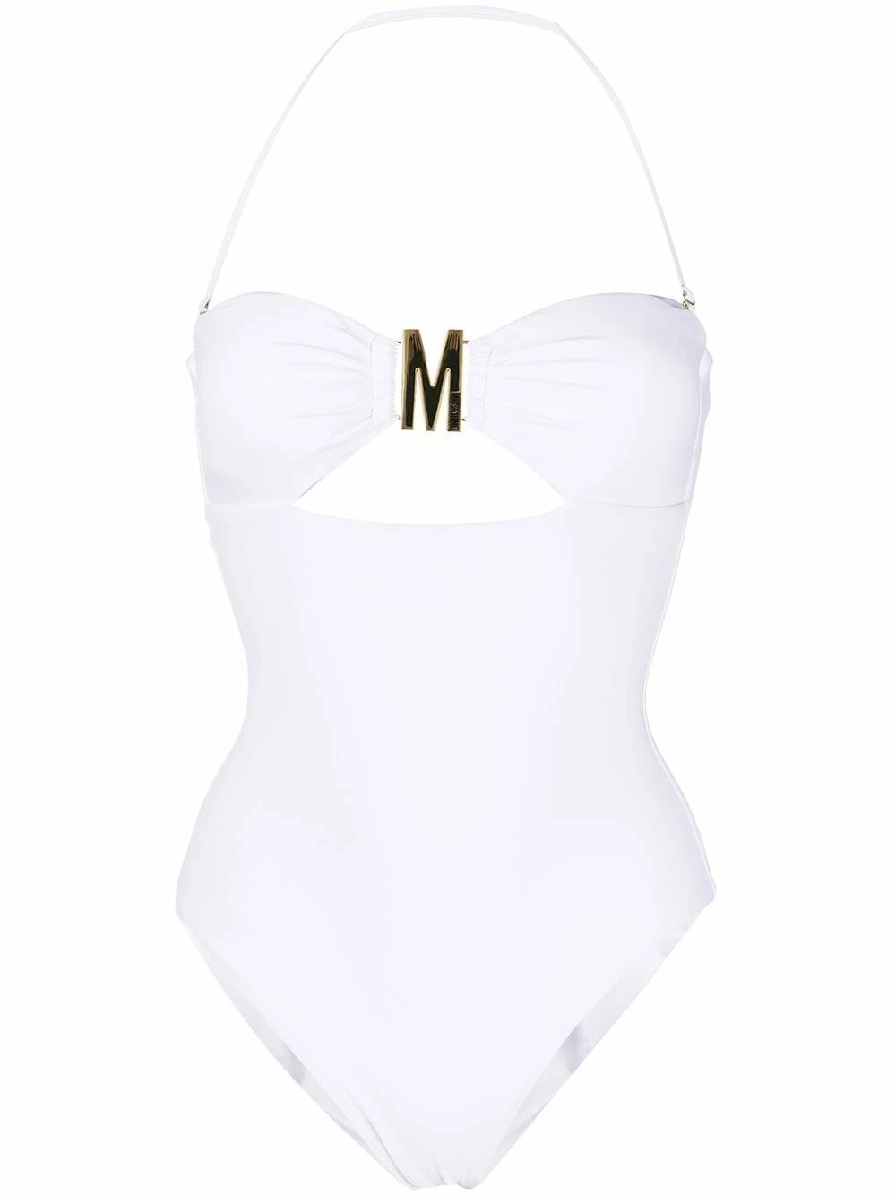 When the sun is shining, there’s no better attire than this chic logo-buckle bikini from Moschino. Boasting glittering gold-tone hardware, you’ll be shining like never before as you catch some rays. Enjoy.ย