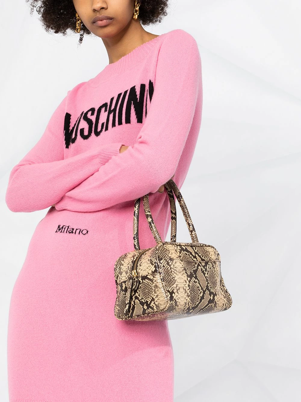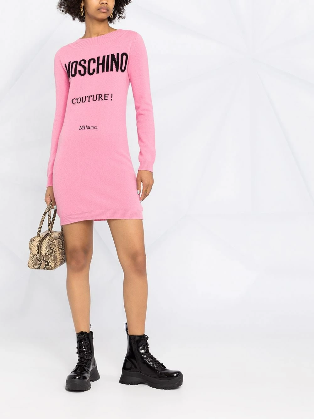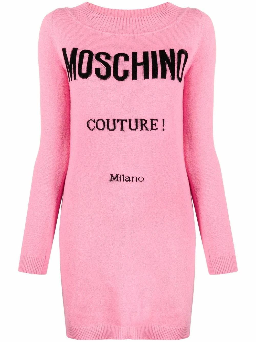 Who said pain is beauty? Moschino proves otherwise with this delightful pink logo Couture knitted dress. Fabricated from cosy cashmere and a virgin wool blend you’re always going to feel good and look even better.Β