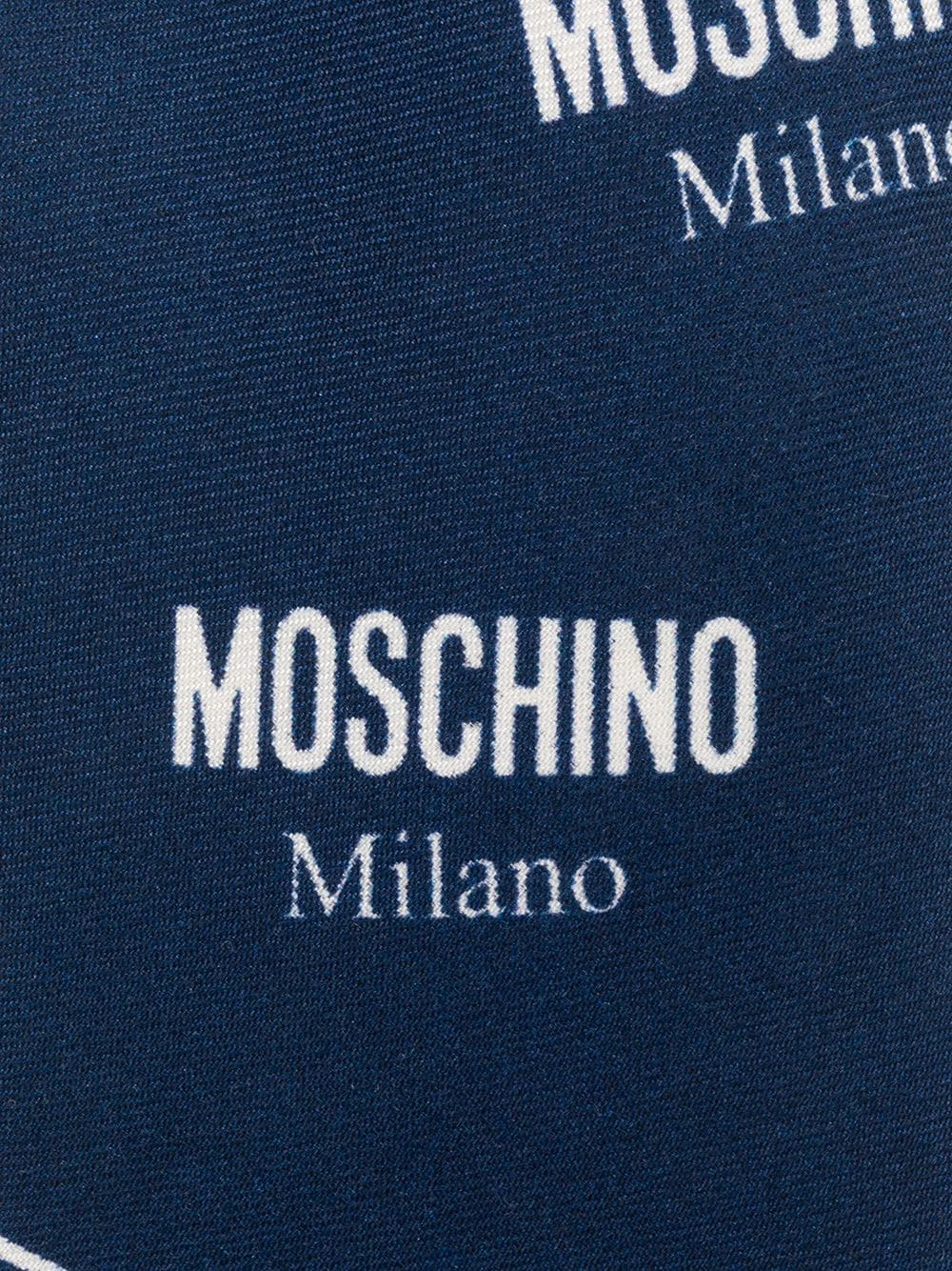 Logomania has come to town, and no one is more aware of this than Moschino. Made from silk, this blue tie has an allover contrasting white logo print. Logo fans, rejoice!