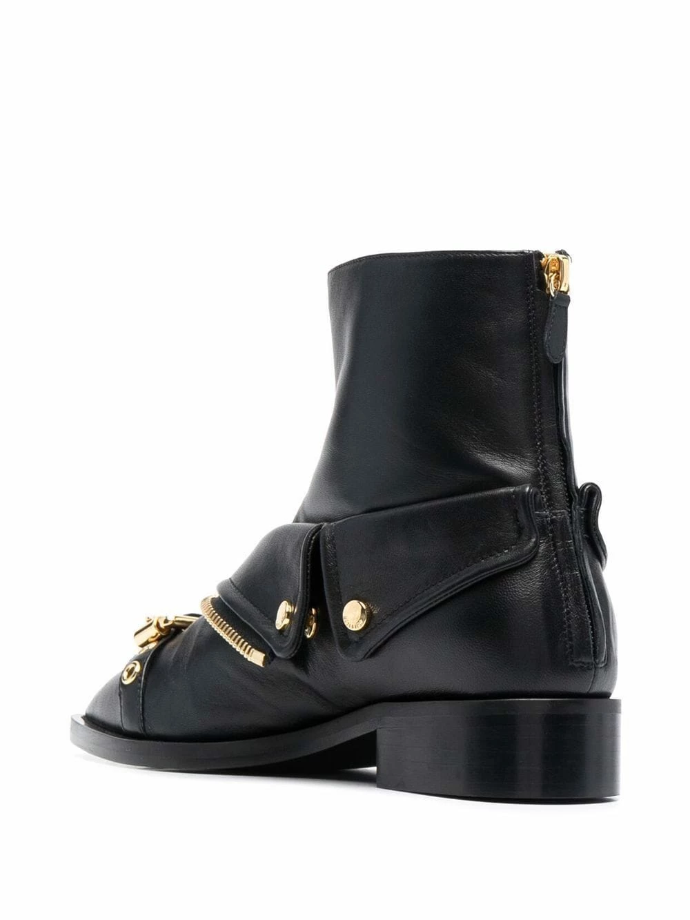 Inspired by the brand’s ever-popular Moto handbag, Moschino presents the Moto boot for AW21. An elegant style sat atop a wearable low-block heel, the boot’s upper imitates a fashion favourite – the classic moto jacket – with gold-tone hardware in tow coming together to create a playful, everyday footwear option.