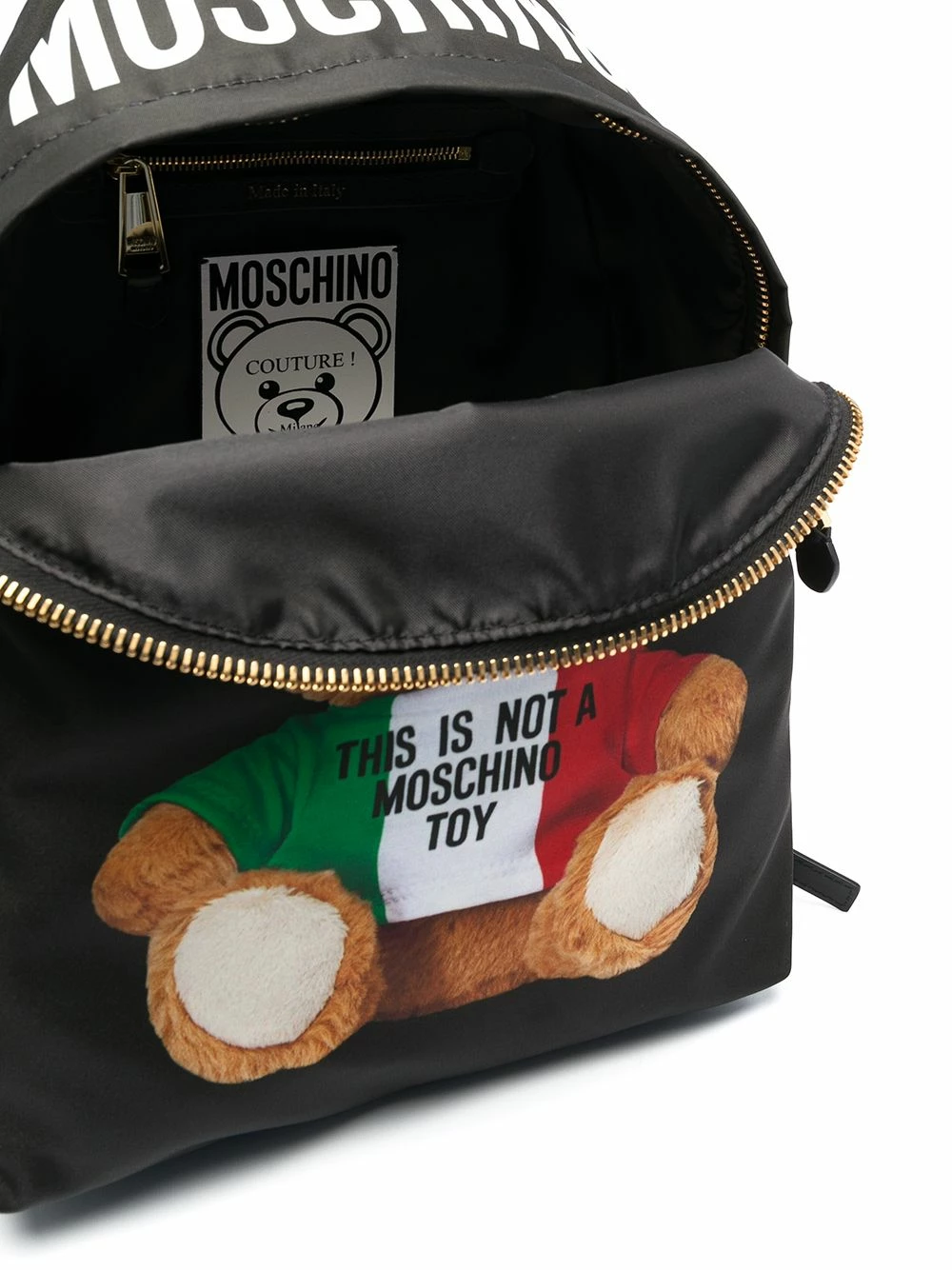 Not enough hands for your coffee, your phone, wallet and snacks? No fear, go hands-free in style with this backpack from Moschino and its signature Teddy motif detailing. Constantly on the go? No problem.